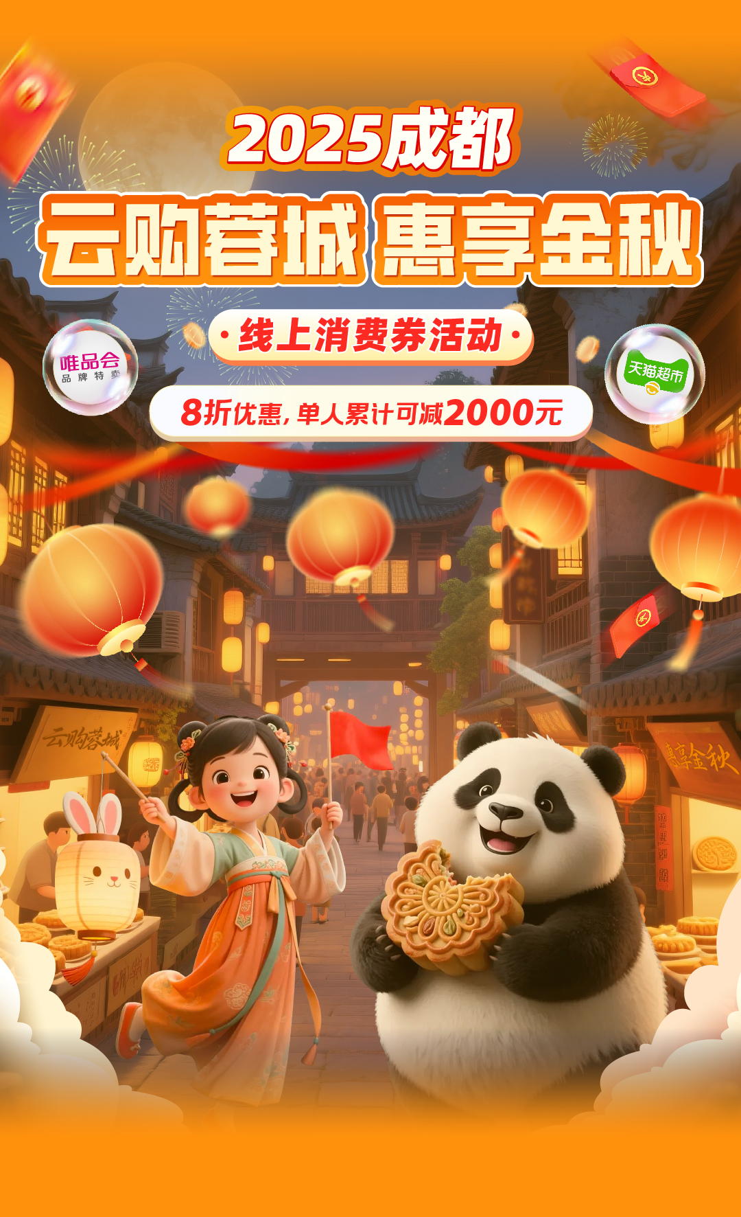 3000万元优惠资金就位,天猫超市、唯品会两大平台同步发力,从潮流服饰到生鲜美食,从美妆护肤到母婴用品,10大品类超百万款商品直享8折,单人累计最高能省2000元,更不用提前抢券,付款时自动享优惠。成都人的秋日购物清单准备起来,这次能省着买个够!