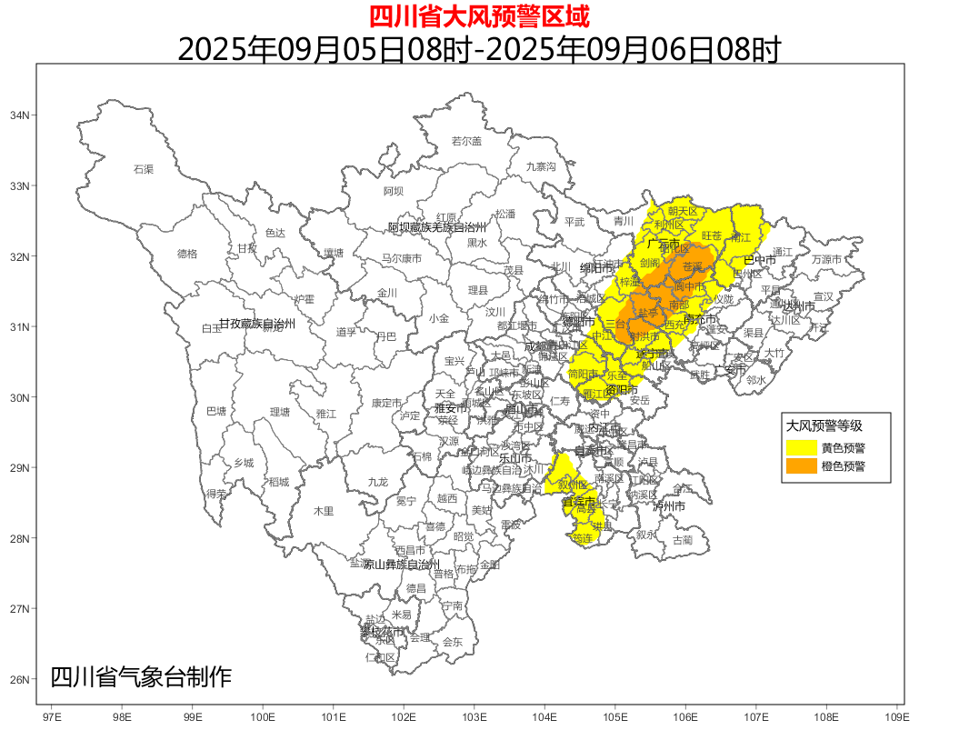 四川省气象台9月5日08时00分发布大风黄色预警: