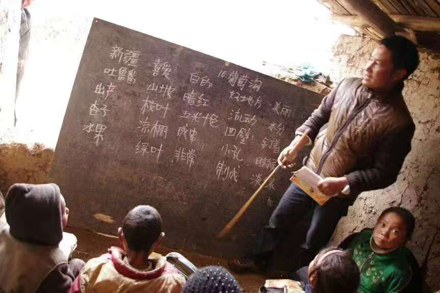 没有校舍,下雨天在牛棚里教学,学生只有四个人,都不会写自己的名字。没有通车,也没有通电。这样的条件,很难留得住人。孩子们开开心心来到学校,待了一段时间,老师待不下去,走了,孩子们失落了,家长们的心也冷了。