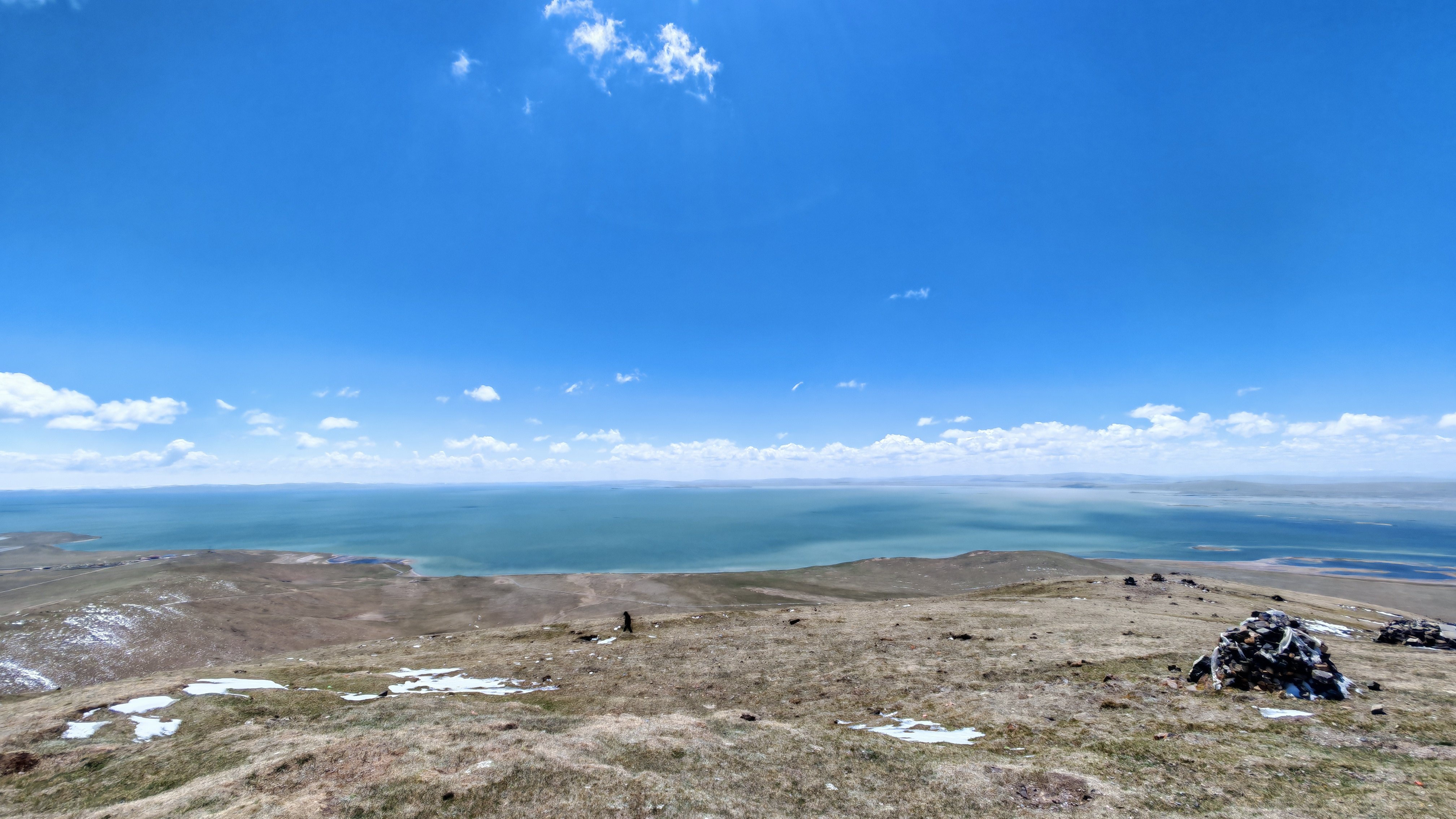 图为8月份,人民日报记者前往扎陵湖,尕日塘刻石在画面偏左靠近湖边200米处。