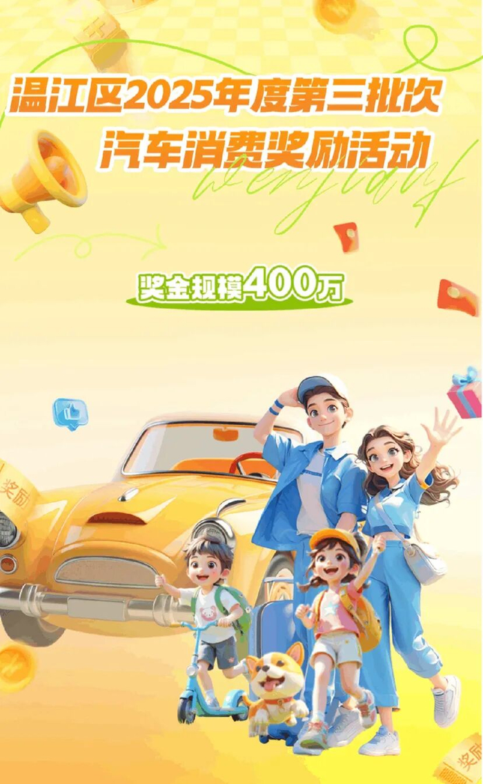 9月25日起,温江区2025年度第三批次汽车消费奖励活动将正式开启,资金规模共计400万元,最高奖励8000元/辆。想换新车的小伙伴,快来一起码住这份领取攻略。