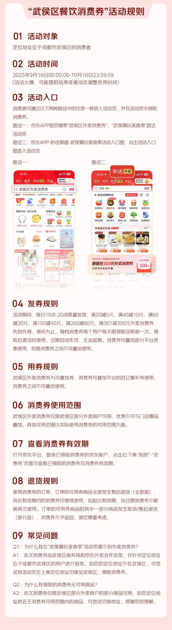 2025年“成都国际美食嘉年华”·武侯潮玩美食季——餐饮消费券活动即将启动,手机位置信息定位在成都市武侯区的消费者,9月16日起至10月16日每天10点至20点,通过APP领取外卖消费券,最高享满301减300,数量有限👇👇👇