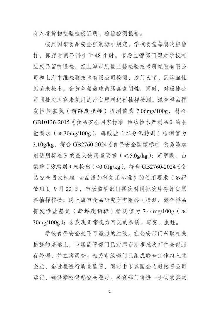 上海三部门通报“部分学校午餐中虾仁炒蛋存在问题”