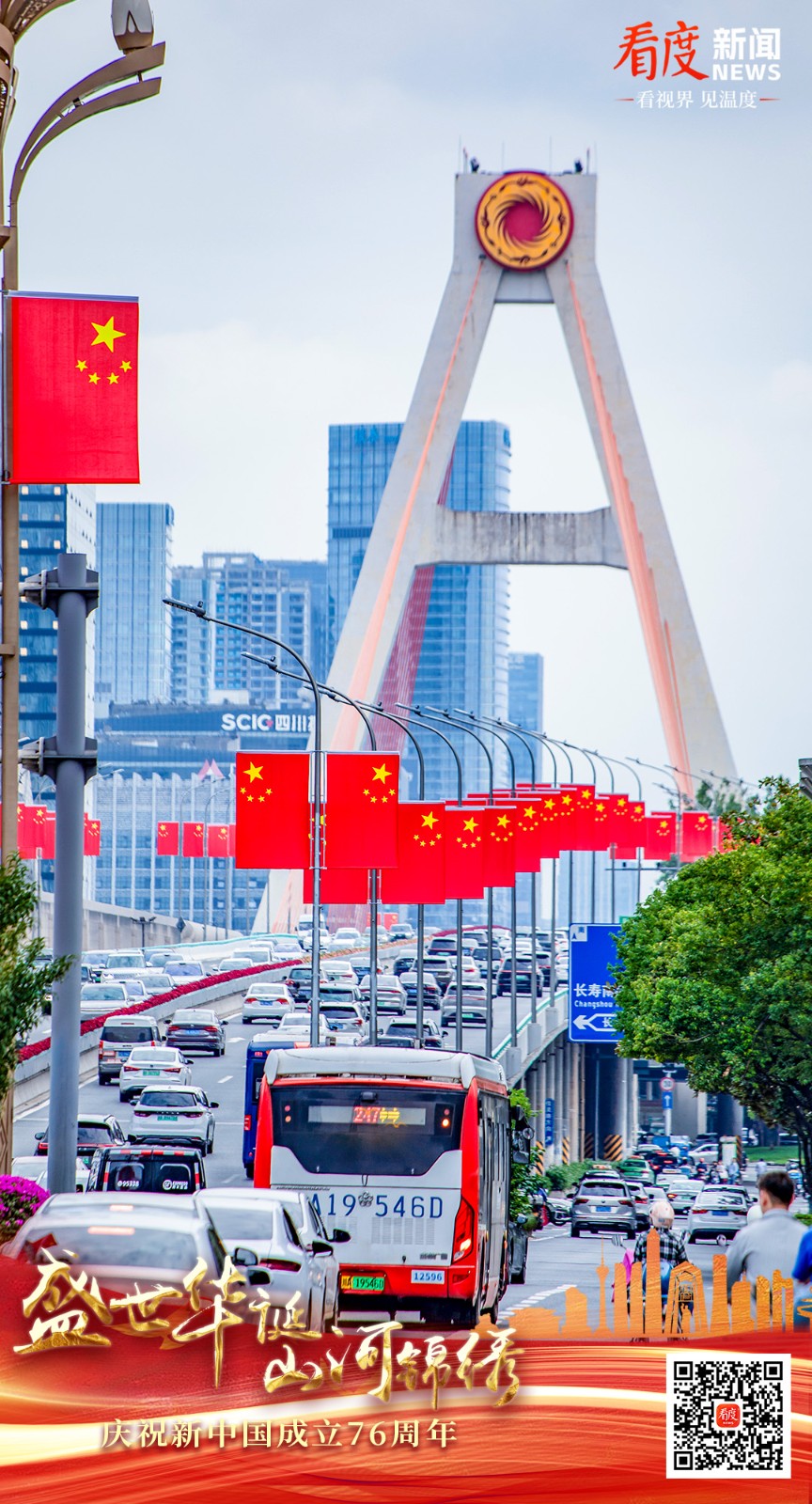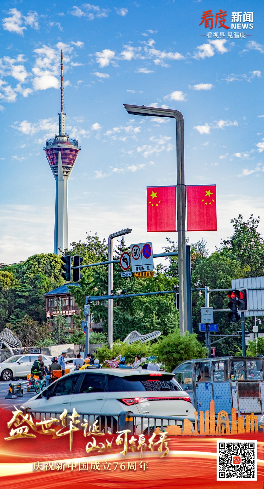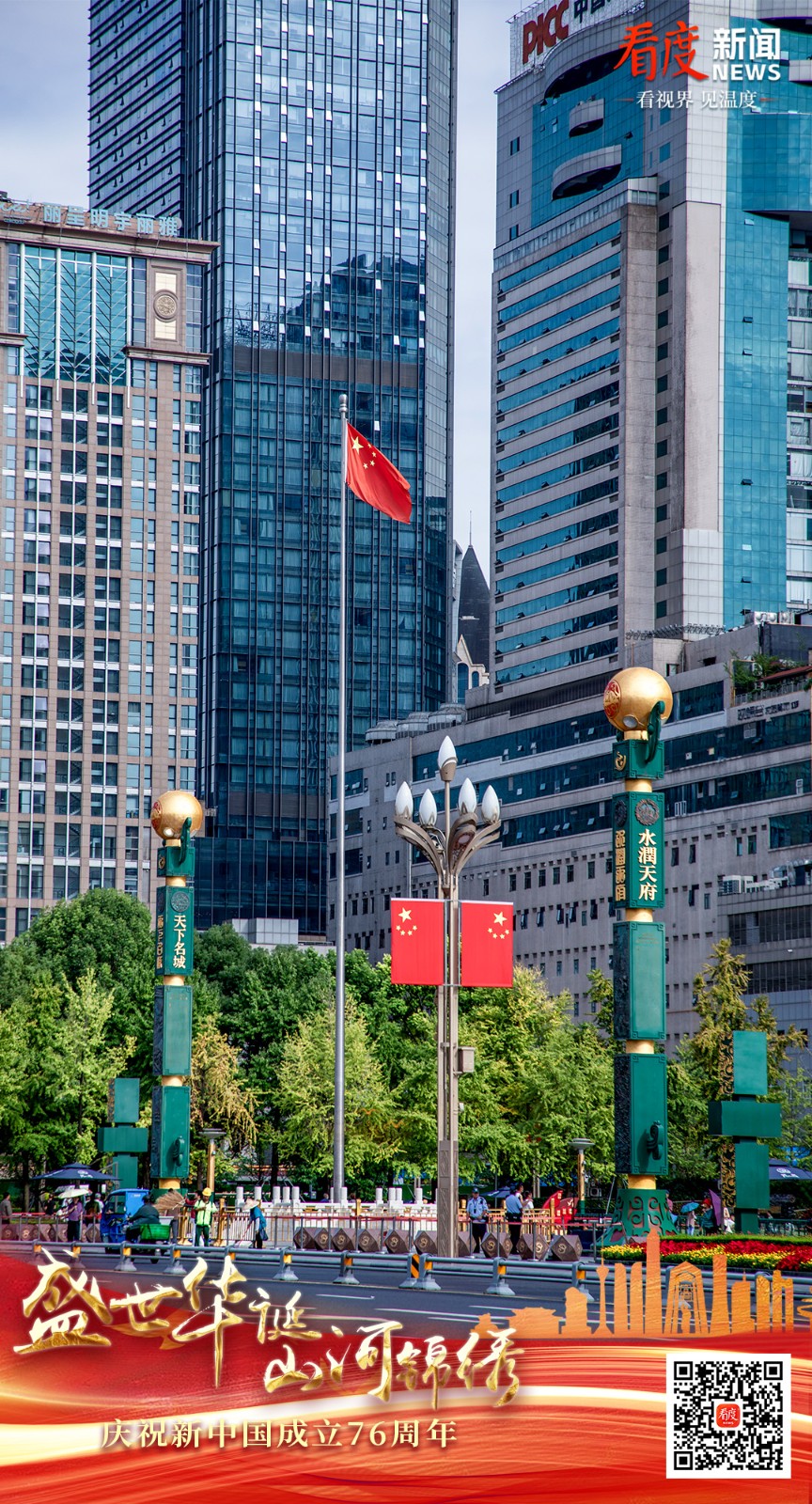 “起来,不愿做奴隶的人们……”清晨的天府广场,不少市民自发聚集于此,注视着五星红旗冉冉升起,用最真挚的方式表达对祖国的热爱。在成都的街头巷尾,一面面五星红旗成为最耀眼的风景线。