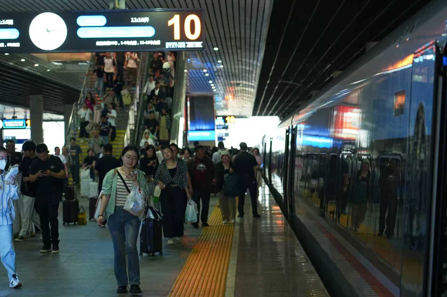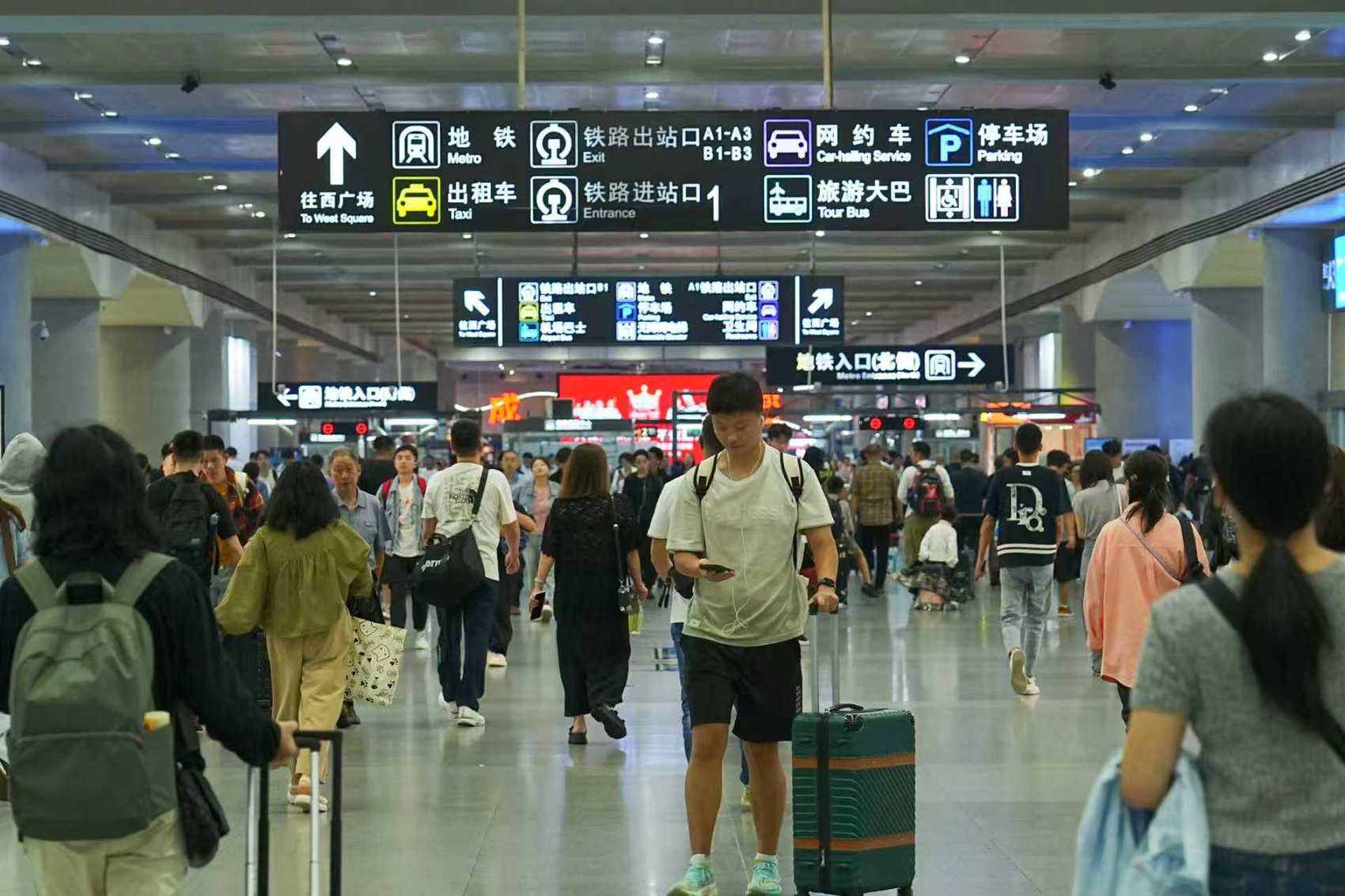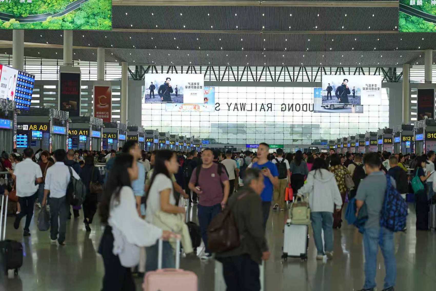 客流高峰预计出现在10月1日(放假第1天),全站预计发送旅客58.6万人次,10月7日预计迎来返程客流最高峰。