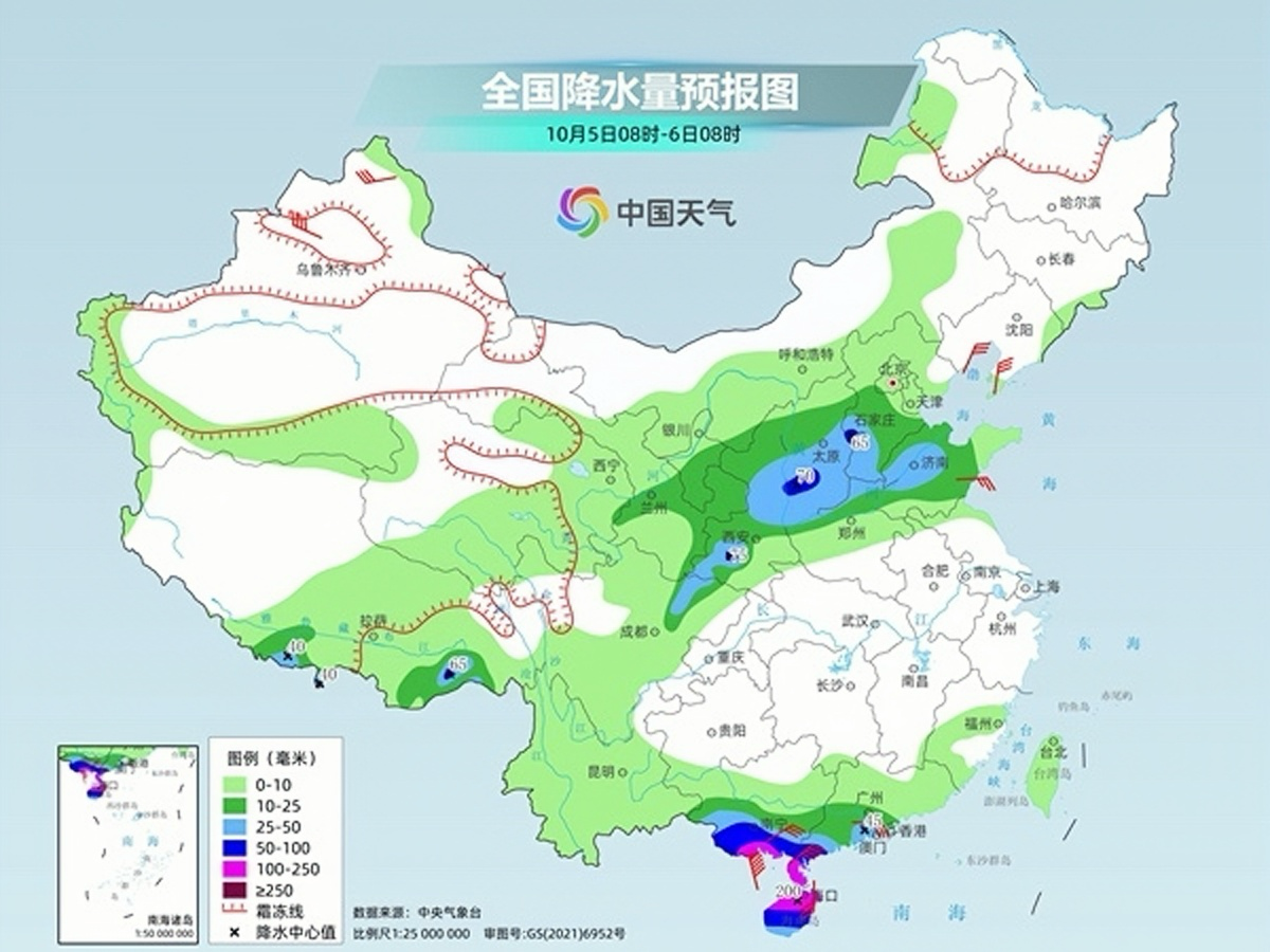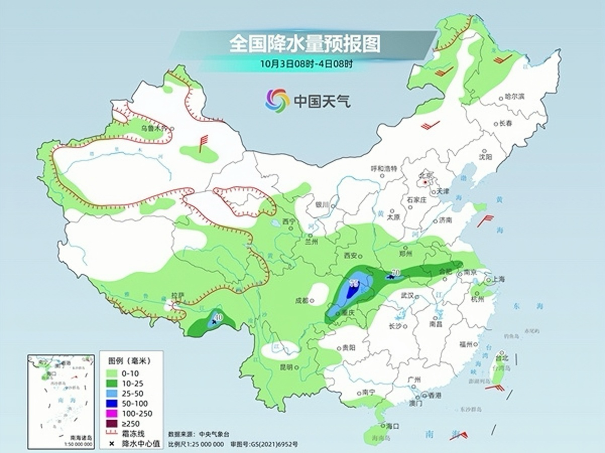 今起三天(10月3日至5日),华西秋雨依然强盛,四川、陕西等地强降雨不断,受今年第21号台风“麦德姆”影响,华南沿海也将陆续迎来强风雨天气。国庆中秋假期期间,北方冷空气接连来袭,华北、东北等地气温将由常年同期偏高转为偏低,而江南、华南则有持续性高温天气,炎热程度同期少见。