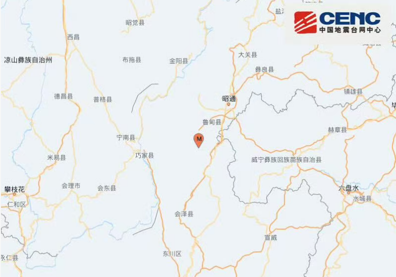 云南昭通市鲁甸县发生4.4级地震 震源深度10千米