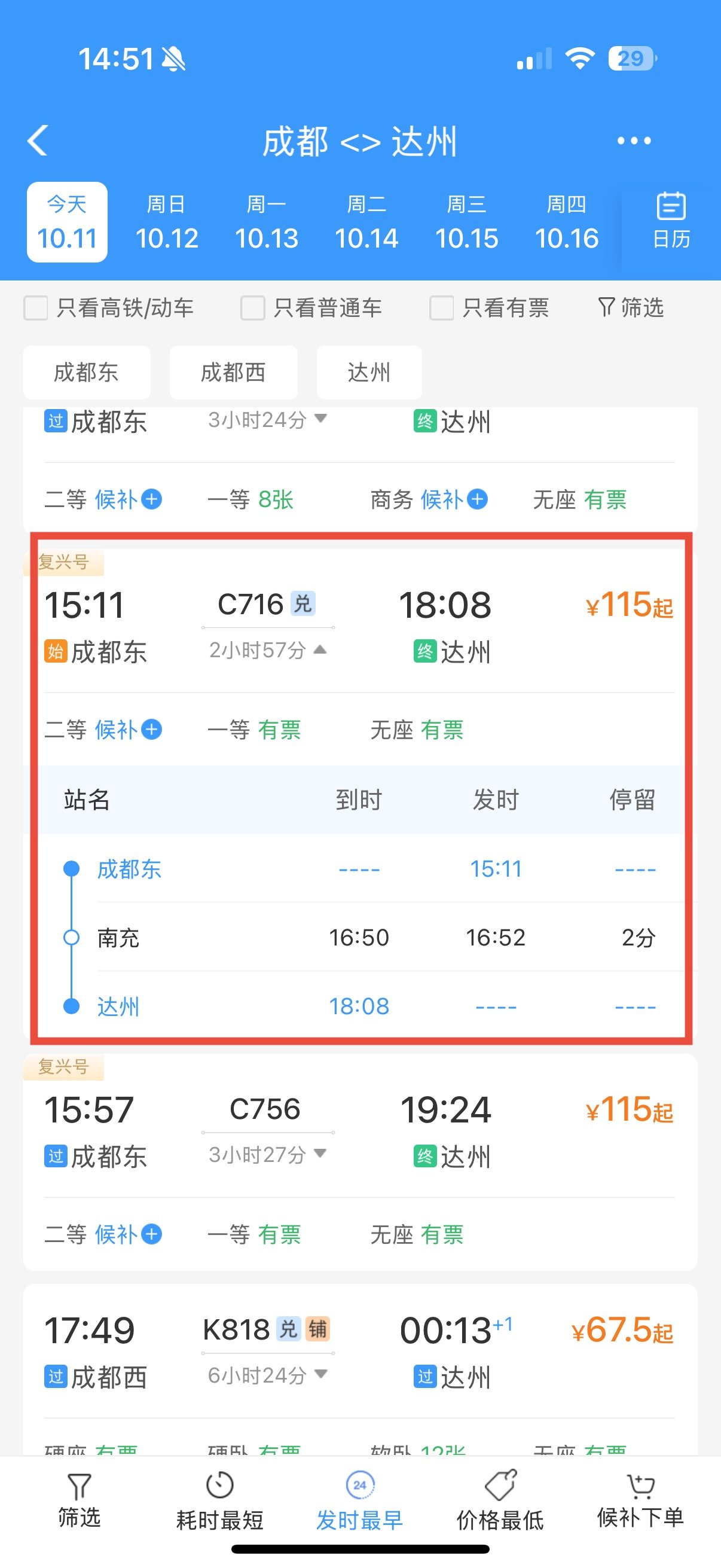 新增成都南-攀枝花南C791次,攀枝花南-成都南C790次;达州至成都东C717次、成都东至达州C716次;重庆西至达州C718次、达州至重庆西C719次。记者查询铁路12306客户端发现,列车出发时段分布在上午下午热门时段,进一步方便了该区域群众出行。