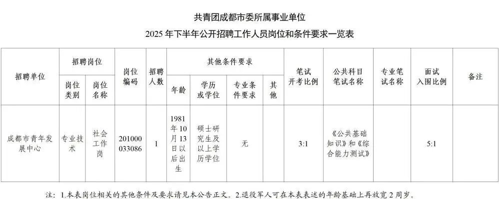 共青团成都市委面向社会公开招聘工作人员1名。