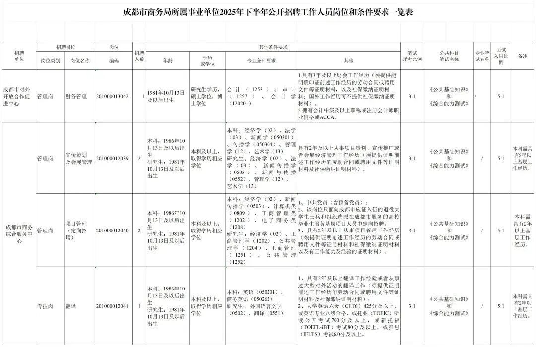 成都市商务局所属2家事业单位面向社会公开招聘工作人员6名。