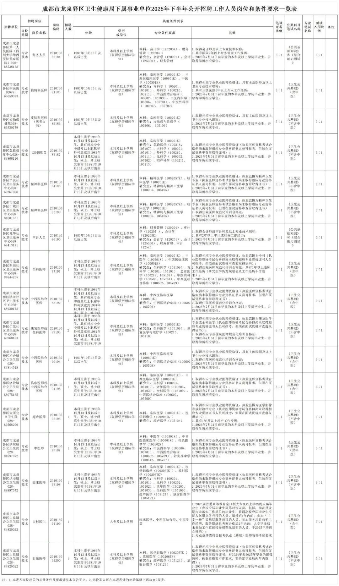 成都市龙泉驿区卫生健康局下属15家医疗卫生事业单位拟面向社会公开招聘工作人员18名。