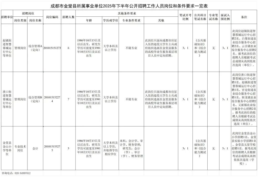 金堂县所属10家事业单位向社会公开招聘工作人员16名。
