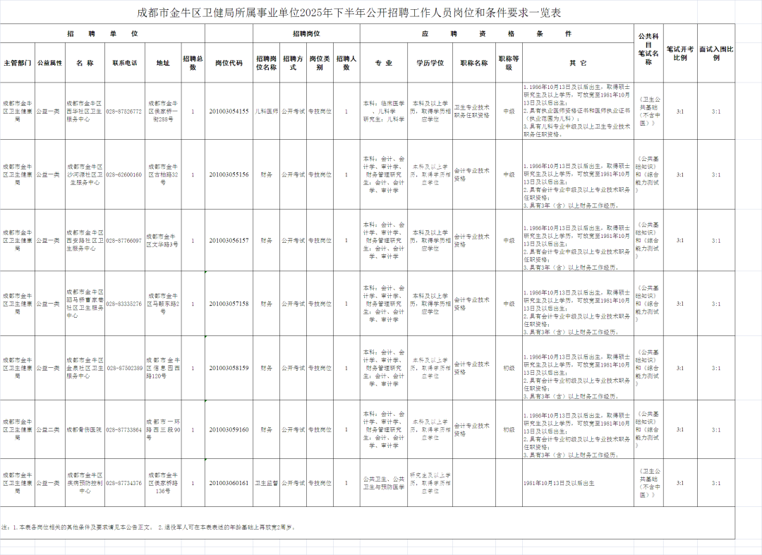 成都市金牛区卫健局所属事业单位面向社会公开招聘工作人员7名。