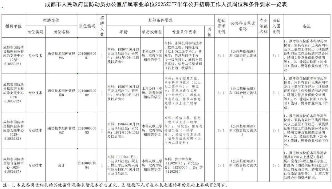 成都市人民政府国防动员办公室面向社会公开招聘工作人员4名。