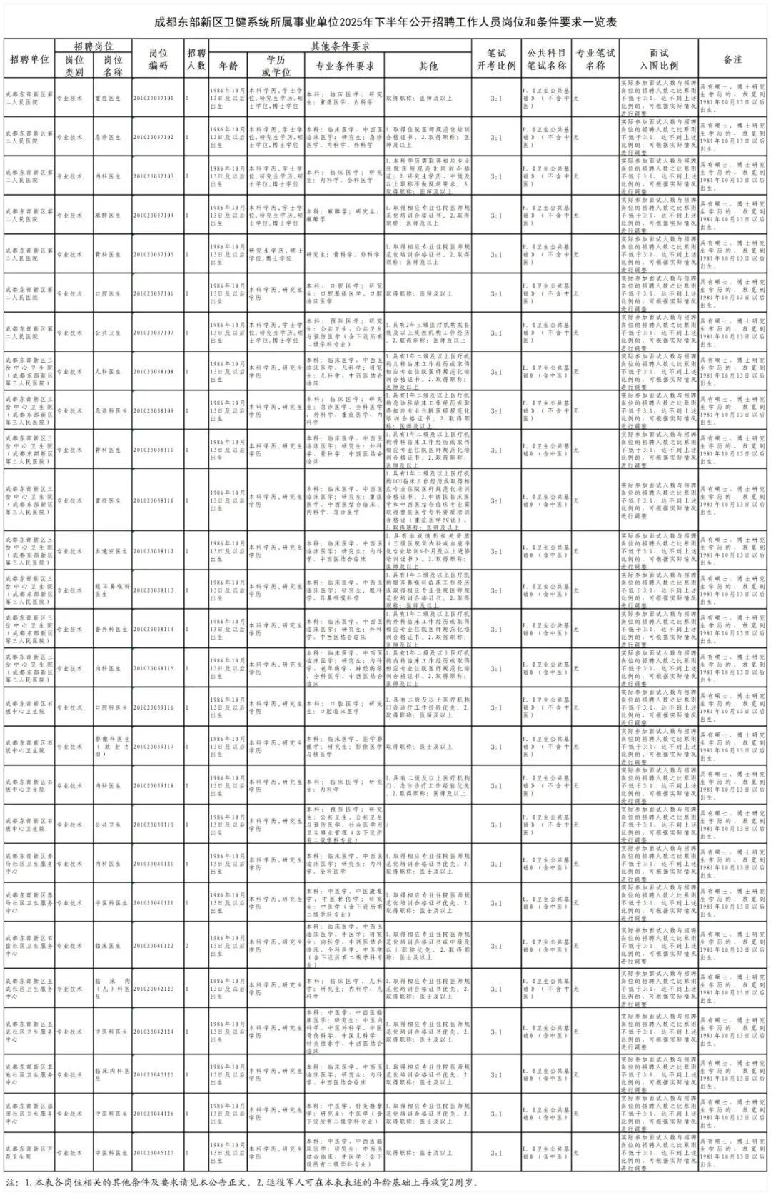 成都东部新区卫健系统所属事业单位面向社会公开招聘工作人员29名。