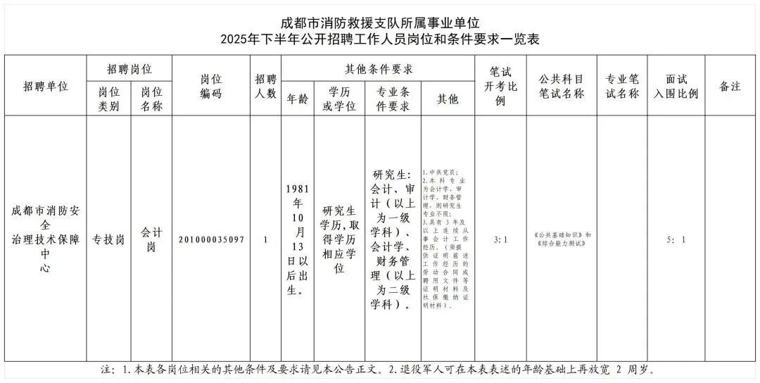 成都市消防救援支队面向社会公开招聘工作人员1名。