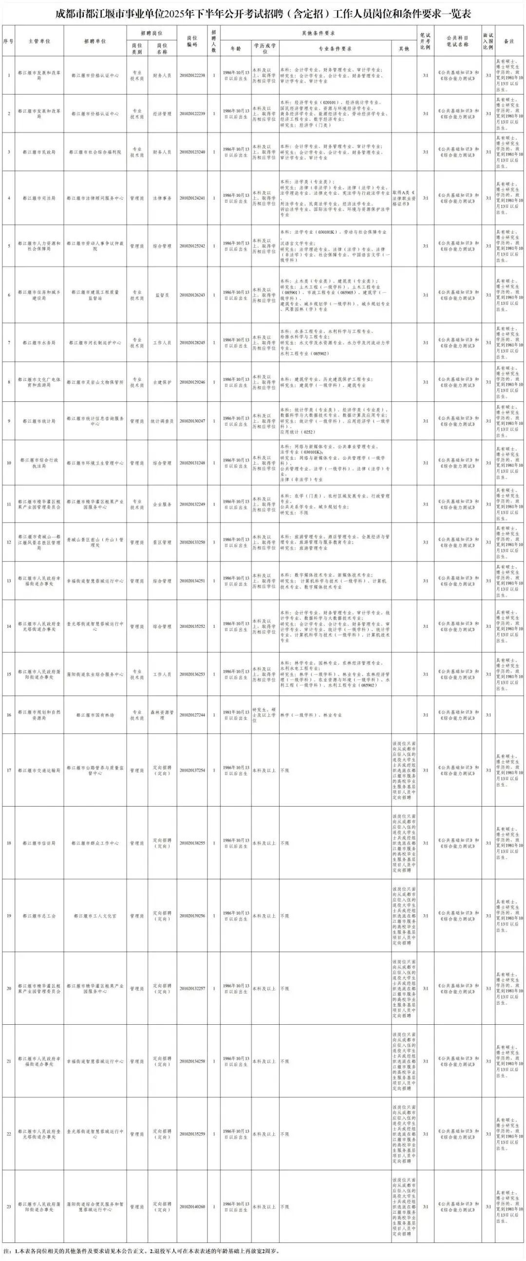 都江堰市事业单位面向社会公开考试招聘工作人员23名(含定招7名)。