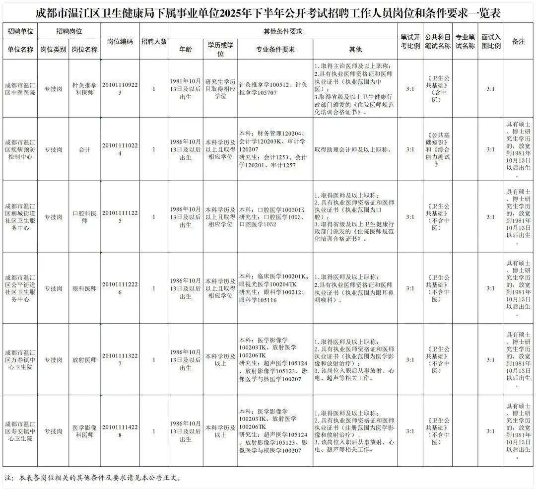 成都市温江区卫生健康局面向社会公开招聘工作人员6名。