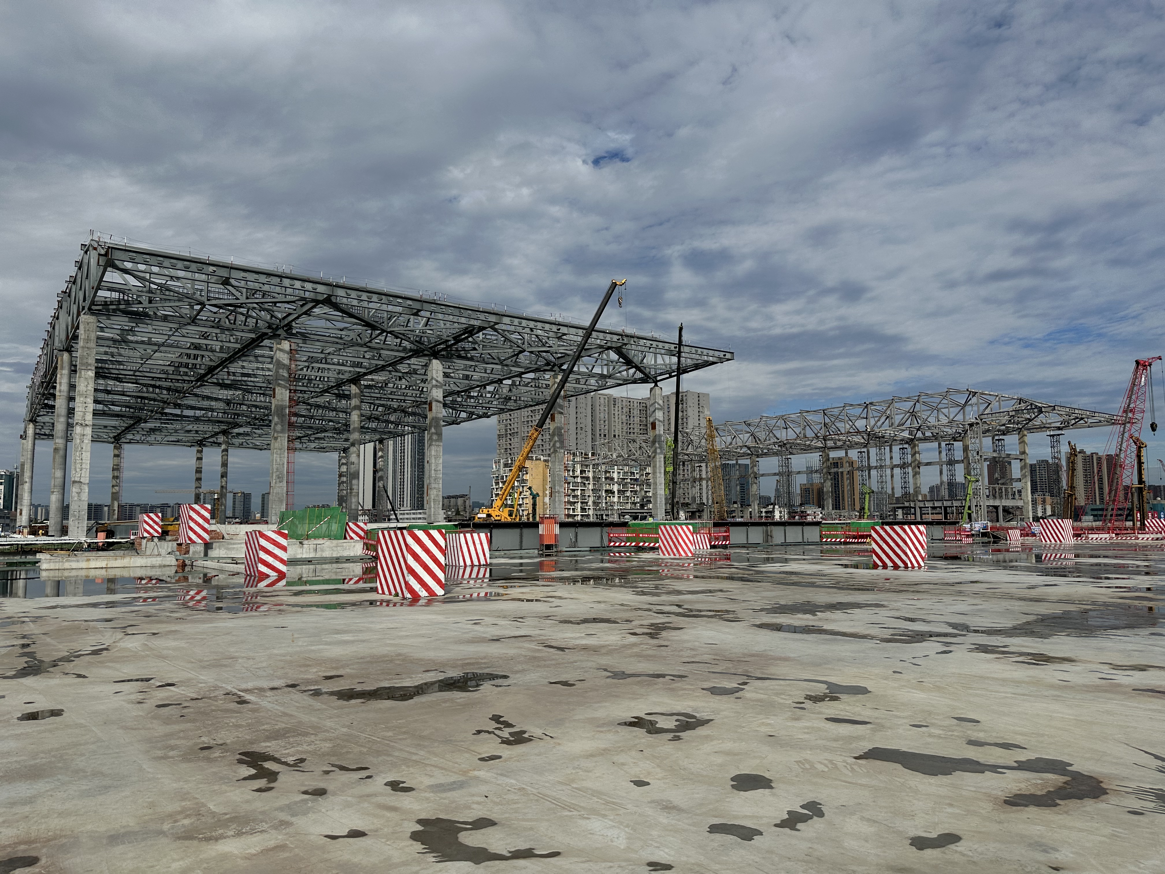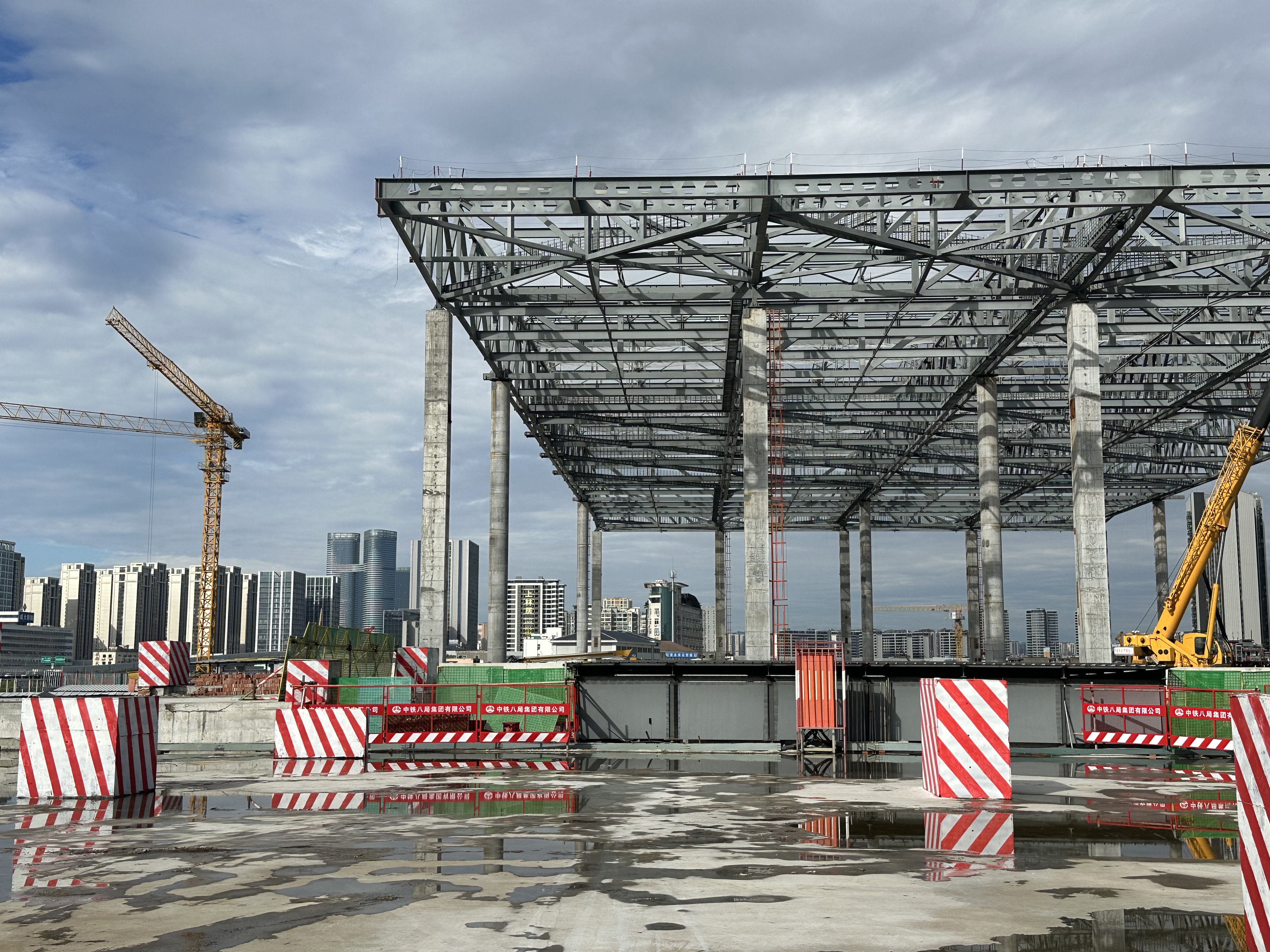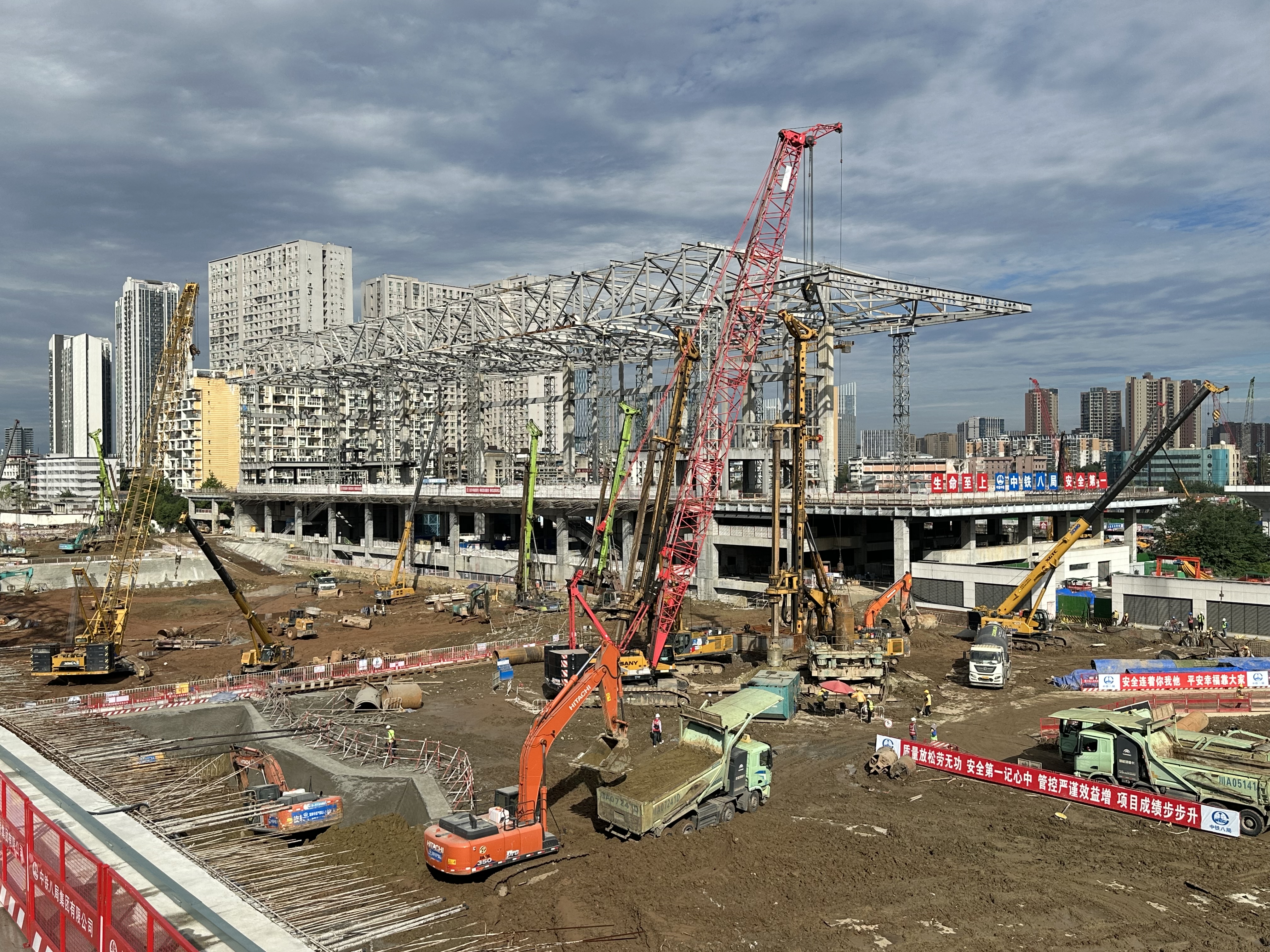 作为在城市中心扩能改造的大型铁路枢纽,火车北站改扩建工程面临着多重挑战,其施工基坑深达40米,距运营国铁线仅有16米,和地铁隧道之间的距离不到5米,地质复杂,降水及支护难度高。为了保护地铁正常运营,施工采用了注浆加固、增加横向支撑等措施,控制地铁结构变形。此外,还采用盖挖顺作法保障工期。分4批次安装最大跨度90米的钢结构屋盖,确保既有线路安全。