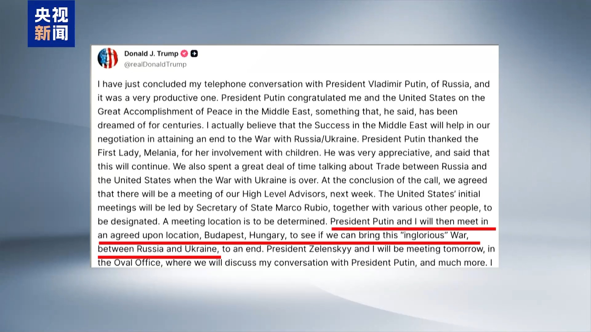 17日在白宫会见乌克兰总统泽连斯基时,特朗普呼吁俄乌双方“就地”停火,各自宣布“获胜”。据美媒披露,在白宫会谈中,特朗普施压泽连斯基,要求乌克兰在领土问题上妥协以快速实现停火,遭到拒绝后,两人不欢而散。