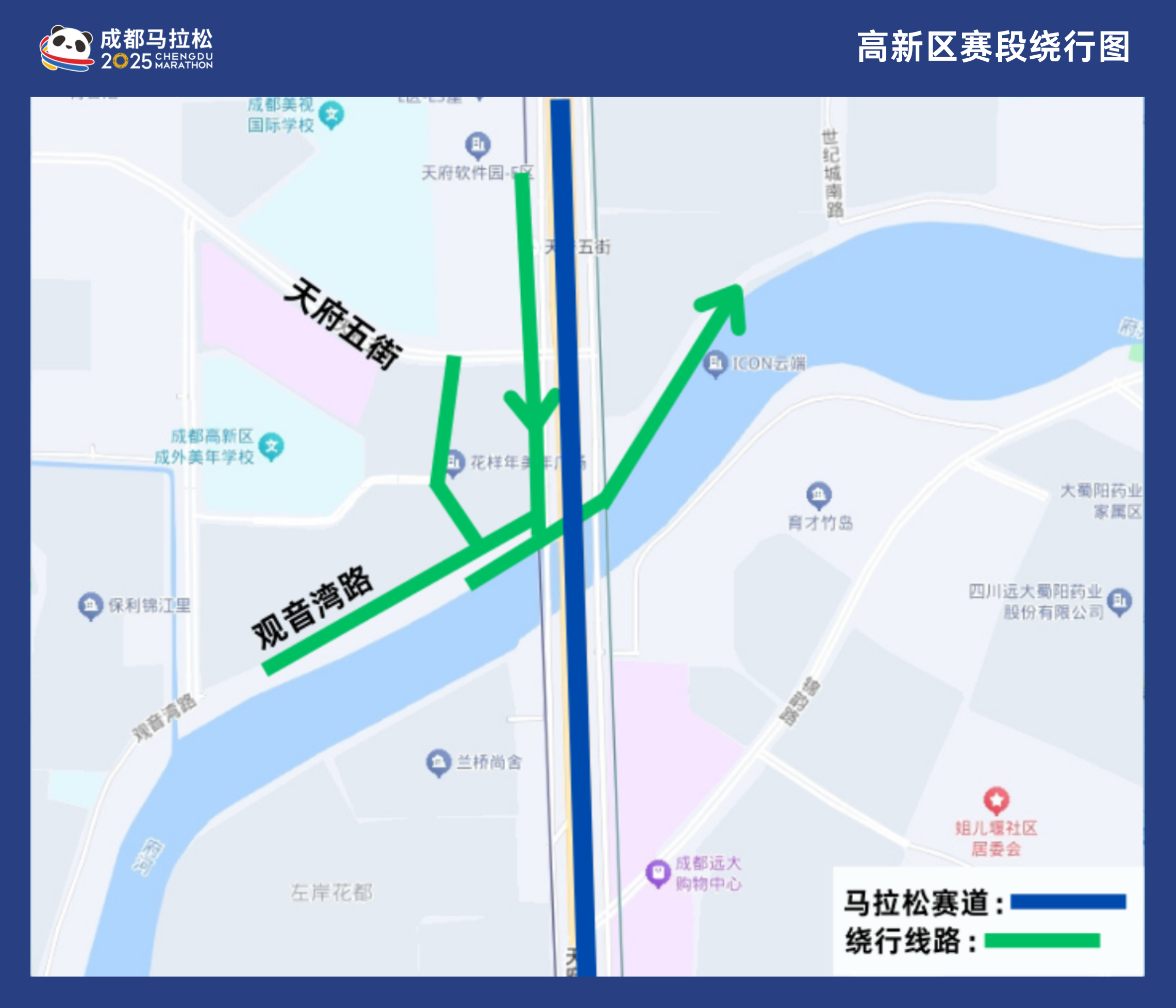 路线4:也可从天府五街、沿观音湾路,从天府大道桥下绕行。