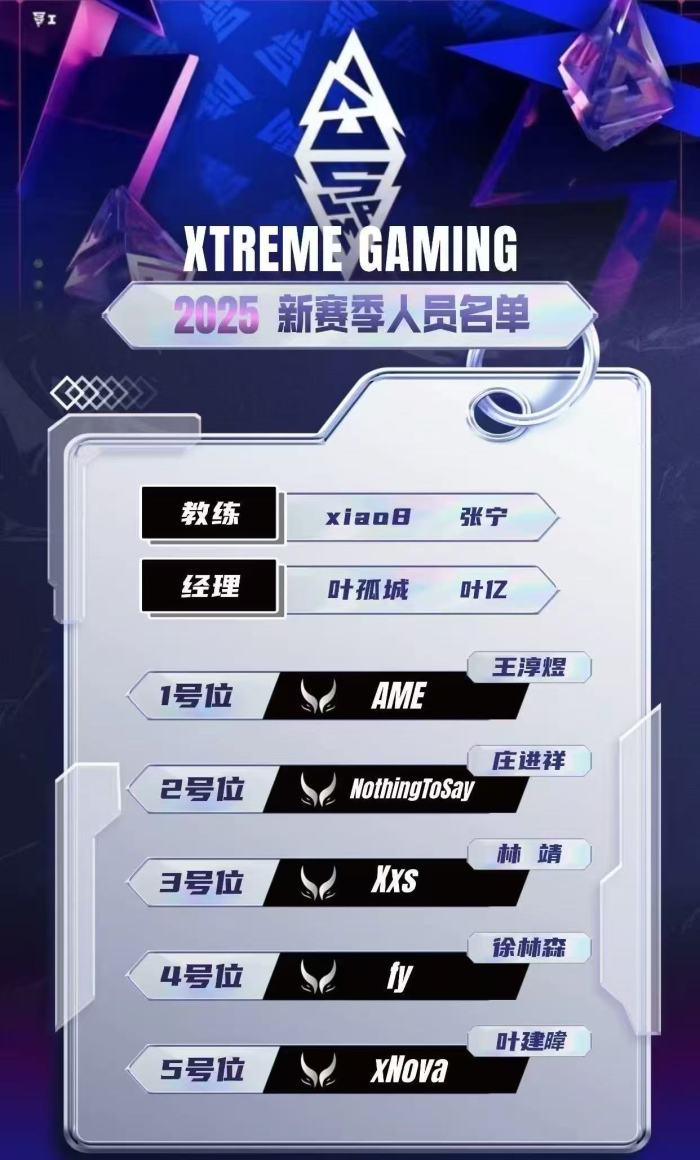 XG战队公布的全新阵容