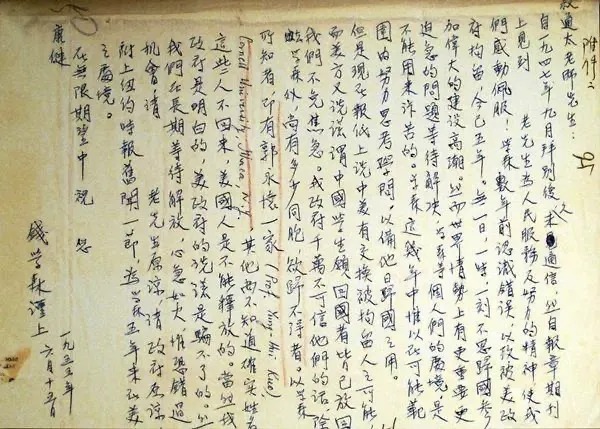 这封信辗转寄回祖国
