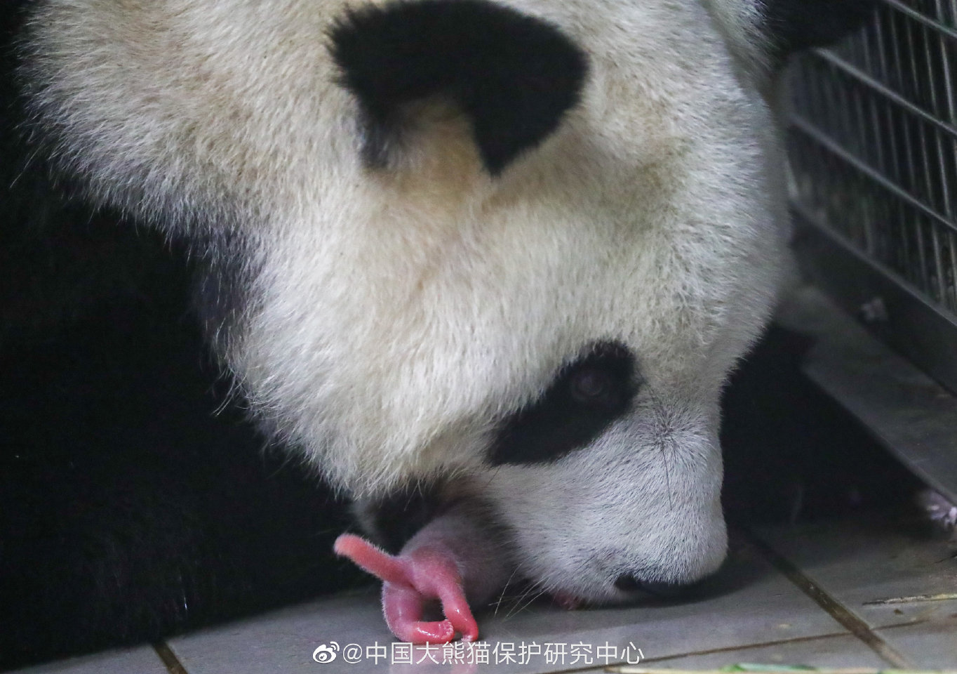 大熊猫“好好”和幼崽。