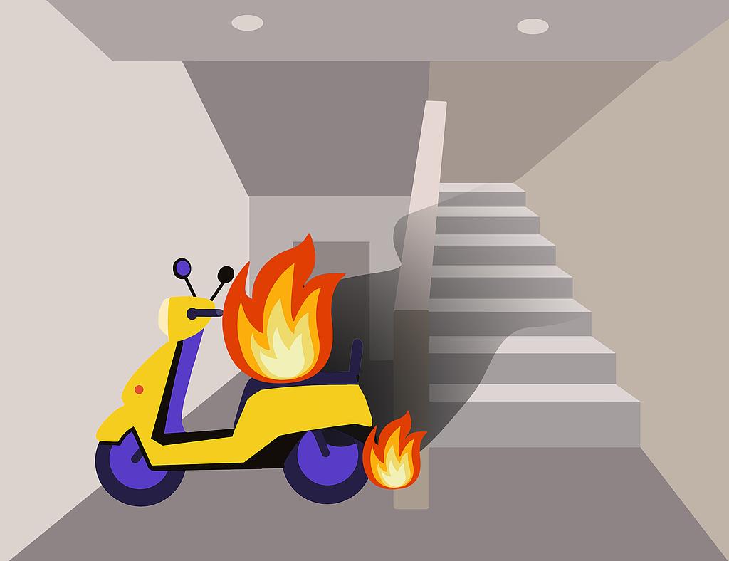 在充电这件事上,也不能存在侥幸心理,尤其是电动自行车充电。今年4月,上海一小区深夜突发火情,一楼楼道里违规充电的电动自行车燃起大火,一对老夫妻盲目开门逃生,被高温烟气严重烧伤。实验显示,如果电动自行车在一楼发生燃烧,二楼烟气温度最快79秒就会飙升到126.7℃,497秒能达到1105.9℃,根本来不及逃生。