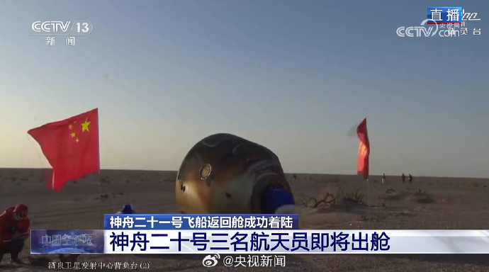 飞船返回舱成功着陆 神二十乘组三名航天员到家了!