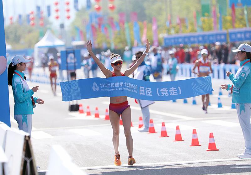 田径女子20公里竞走决赛,杨家玉夺冠。