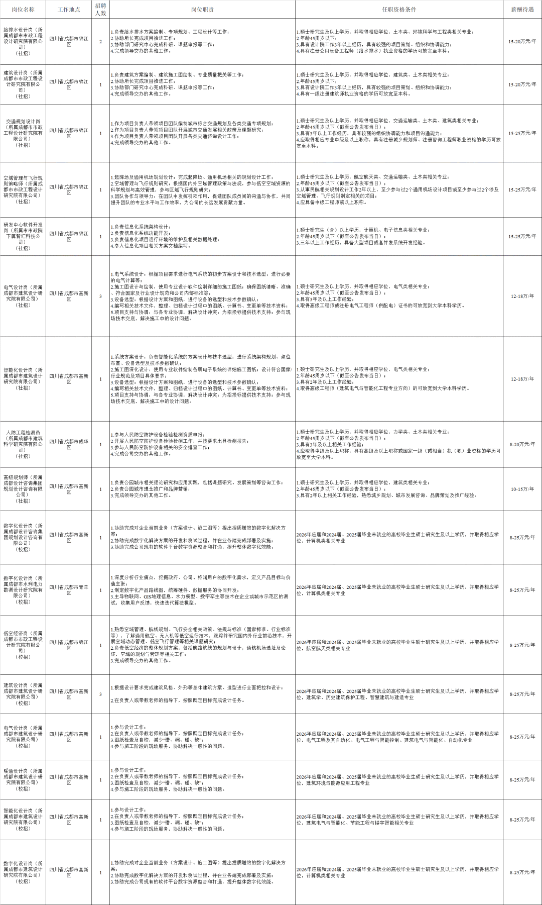 找工作的小伙伴看过来!成都设计咨询集团、成都银行、锦泰财产保险股份有限公司、成都建工集团有限公司、四川蜀道轨道交通集团有限责任公司正在招人!来看看有适合你的岗位吗?