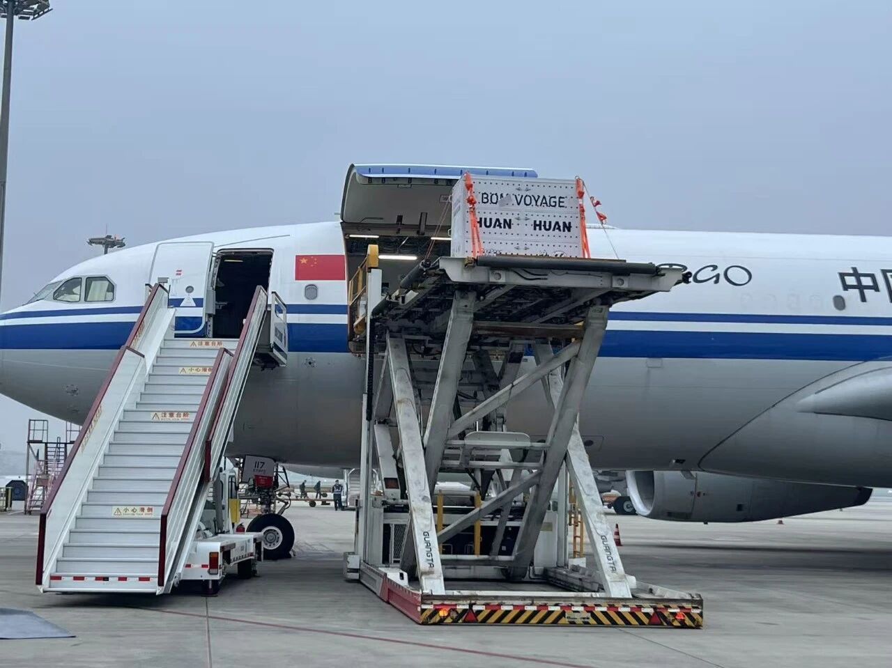 △2025年11月26日旅法大熊猫“欢欢”“圆仔”平安回国