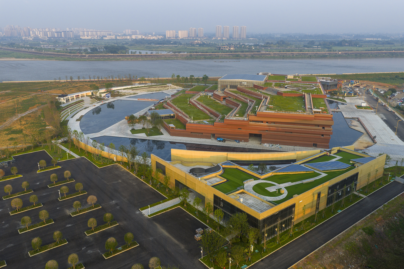 江口沉银博物馆整体涵盖游客中心、博物馆主体建筑与考古工作站。
