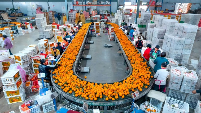 “果子刚摘下来,不远处的原乡果业就能分拣,24小时内发往上海、北京,甚至国外。”在天府果荟国家现代农业产业园,原乡果业负责人曾德光道出产业链“速度”。这里既是“中转站”,更是“增值站”:智能分拣线通过糖度检测、重量分级,将柑橘精准分为“商超级”“电商级”“加工级”,糖度≥14%的优质果装定制礼盒,价格比普通果高50%;深加工车间还产出柑橘果干、果酱、饮品及柑橘味米花糖。