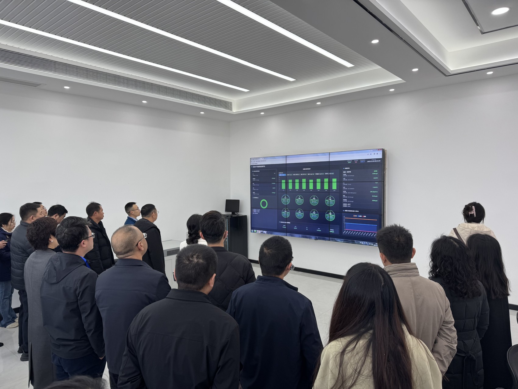 水体溶氧量等数据被实时传送到大屏幕上。