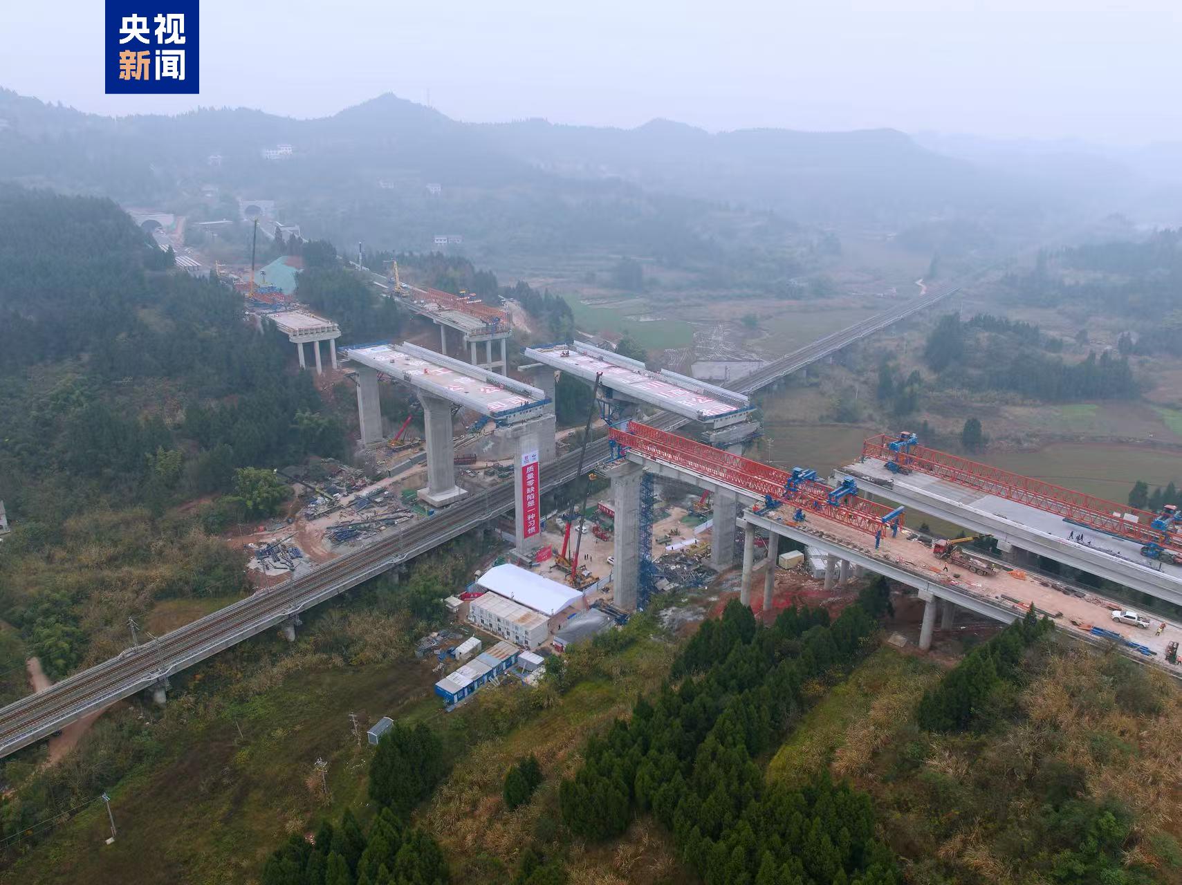 12月18日,成南高速扩容项目上跨兰渝铁路大桥左右幅主梁与主桥实现毫米级对接,转体成功。该桥双幅转体重量达2万吨、转体最大高度49.4米,为国内最高墩底转体T构桥。