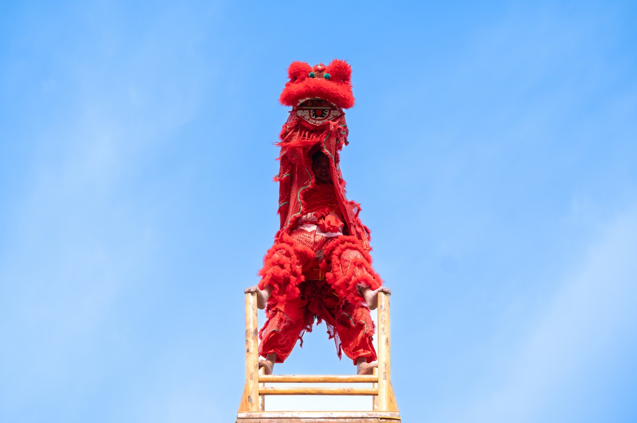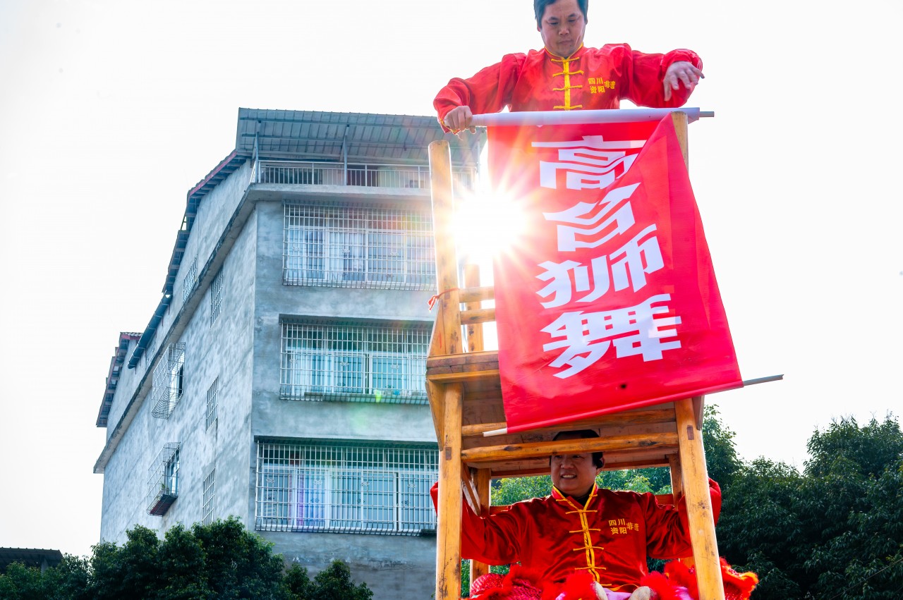 10米高空赤脚起舞 500年堪嘉红莲高台狮舞从田埂跳进省级非遗名录