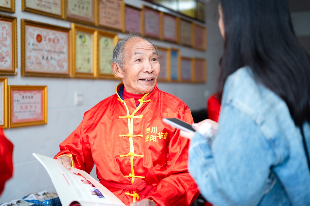 他见证了堪嘉狮舞最辉煌的岁月。“这项技艺起源于明朝成化年间,最初是刘姓族人清明祈福、驱魔辟邪的地浪狮舞,后借助川剧庙戏的兴盛,演变为如今的高台狮舞。曾经,堪嘉狮舞是清明庙会、红白喜事里不可或缺的‘重头戏’。”回忆往昔,老人眼睛发亮,“十二张桌子搭起近10米高台,我们一路舞到塔顶,在四只桌脚上完成‘海底捞月’‘雄狮晒背’等绝活,观众围得里三层外三层,底下掌声像打雷。”
