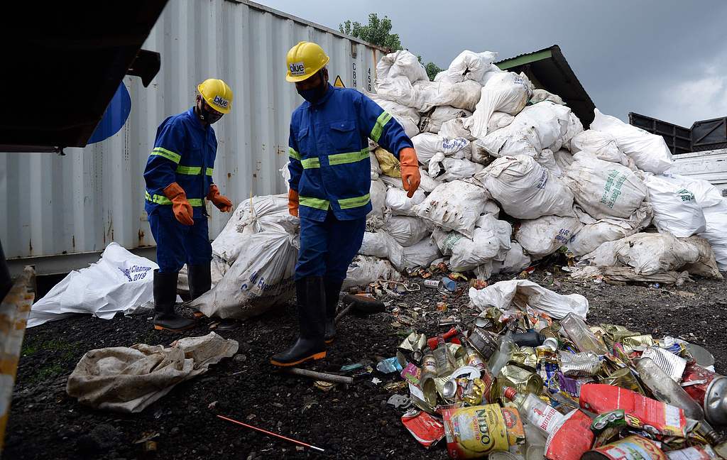 工人们将从珠峰上回收的垃圾进行分类 图据央视新闻
