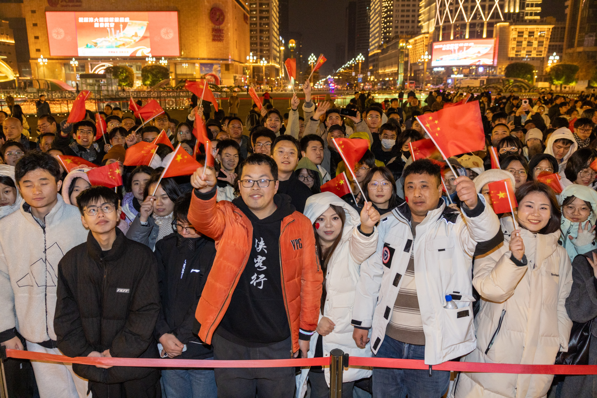 镜头扫过人群,总能捕捉到动人的细节与真挚的心声。现场,不少市民用镜头记录这一庄严时刻,留下难忘瞬间。来自武汉的李兴也早早调试好相机:“这是我第一次来成都看升旗,真没想到这么多年轻人愿意凌晨赶来,那份寒意瞬间就被现场的热情驱散了。”