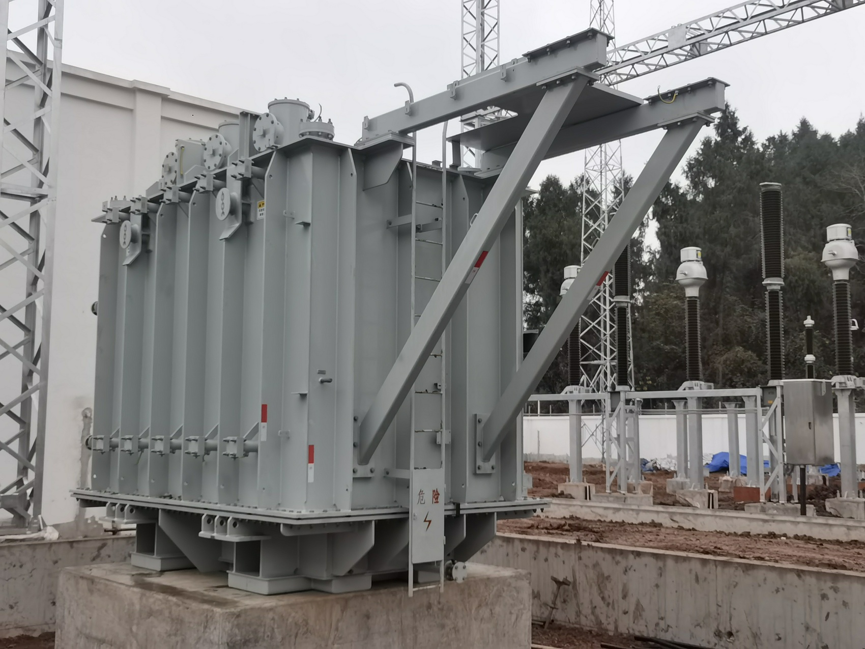 牵引变压器是铁路牵引供电系统的“心脏”,核心功能是将国家电网高压电能转换为适配电力机车的电能,其安装精度与质量直接决定未来铁路运营的安全、稳定与效率。本次全线就位的牵引变压器共计12台,分别部署于安岳、乐至及简州三座牵引变电所内,为全线供电系统搭建起核心骨架。