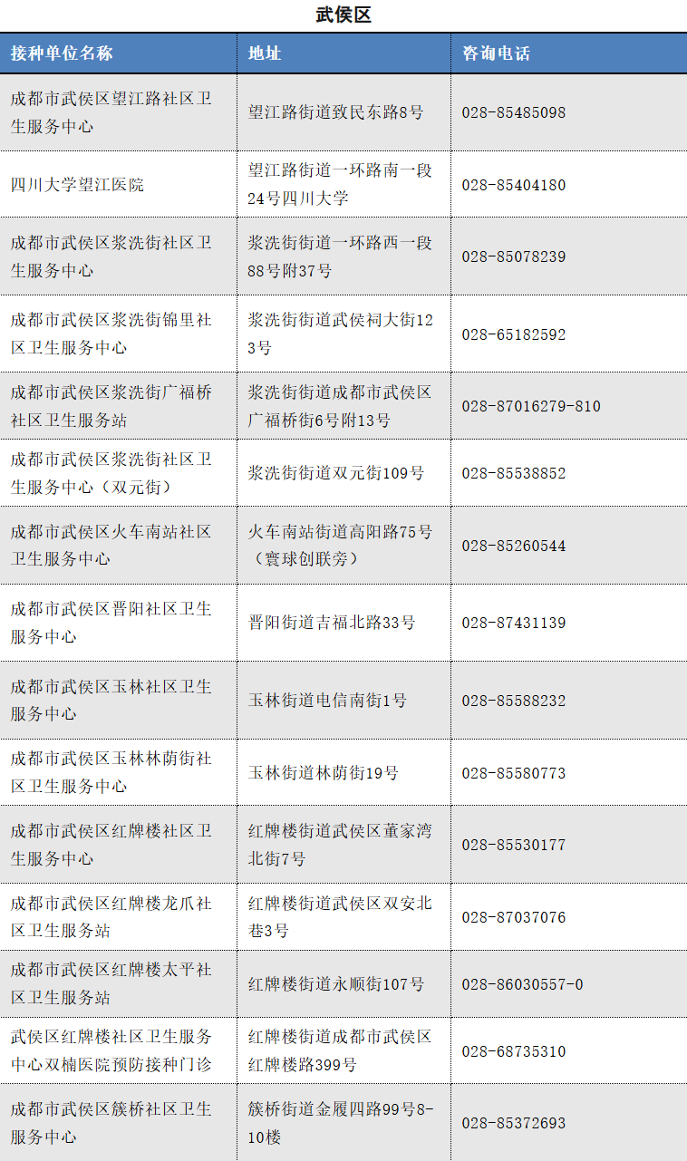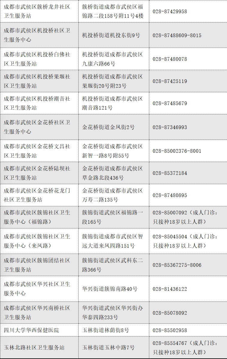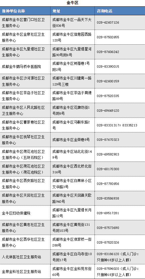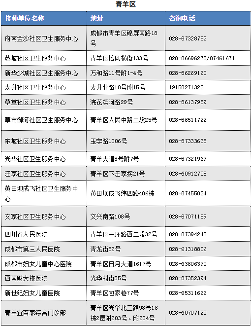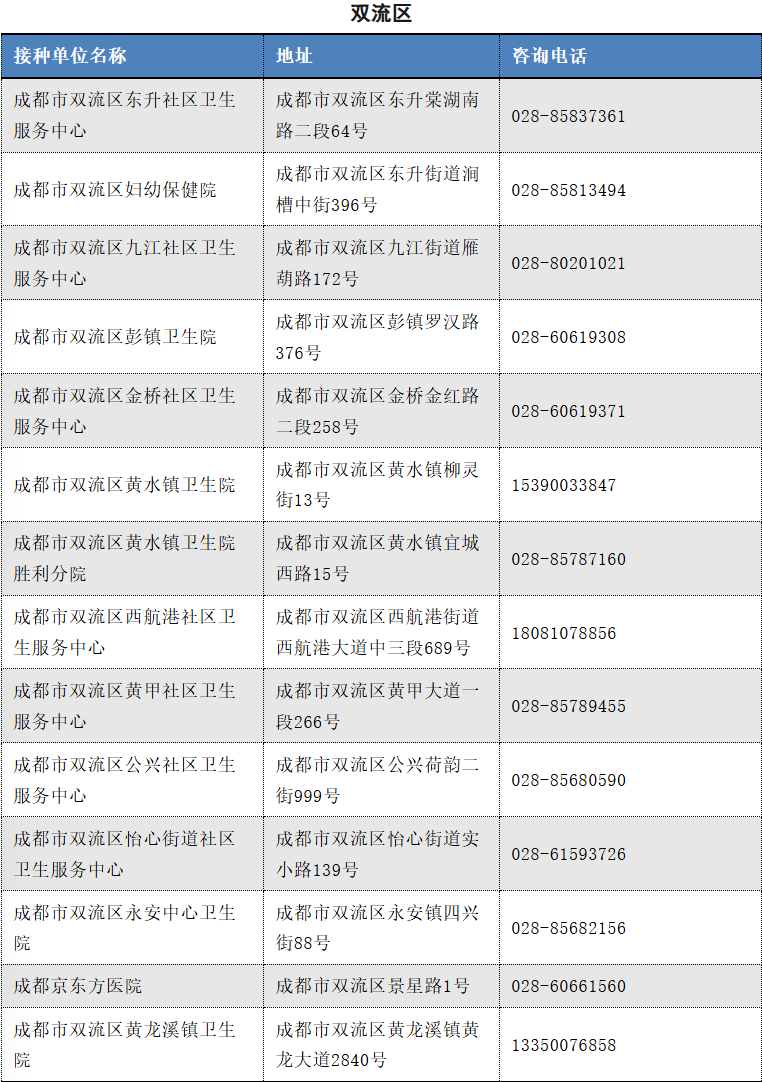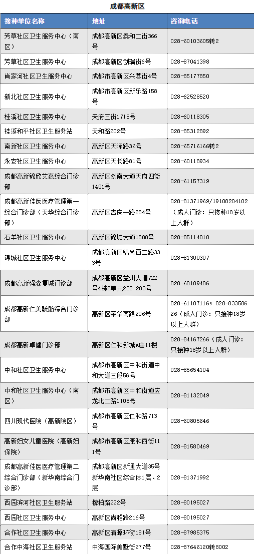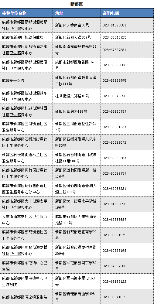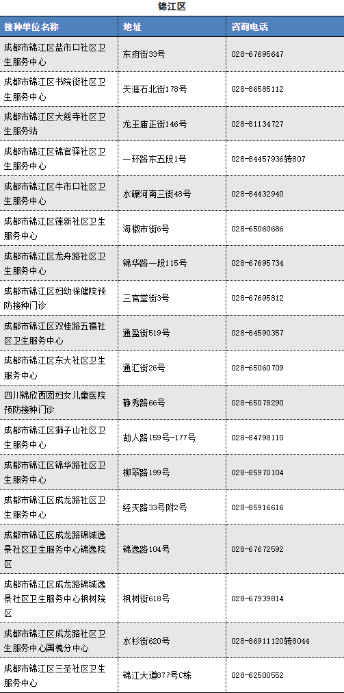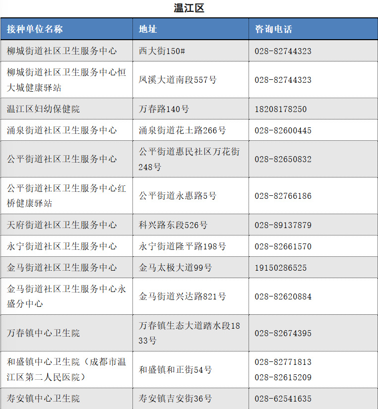 以下是成都市流感疫苗接种单位信息(截至2025.11.12)