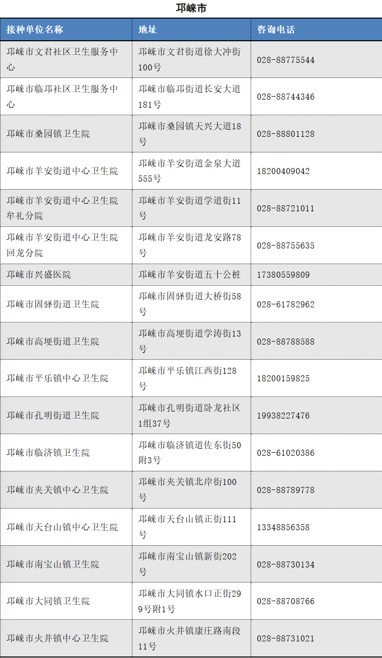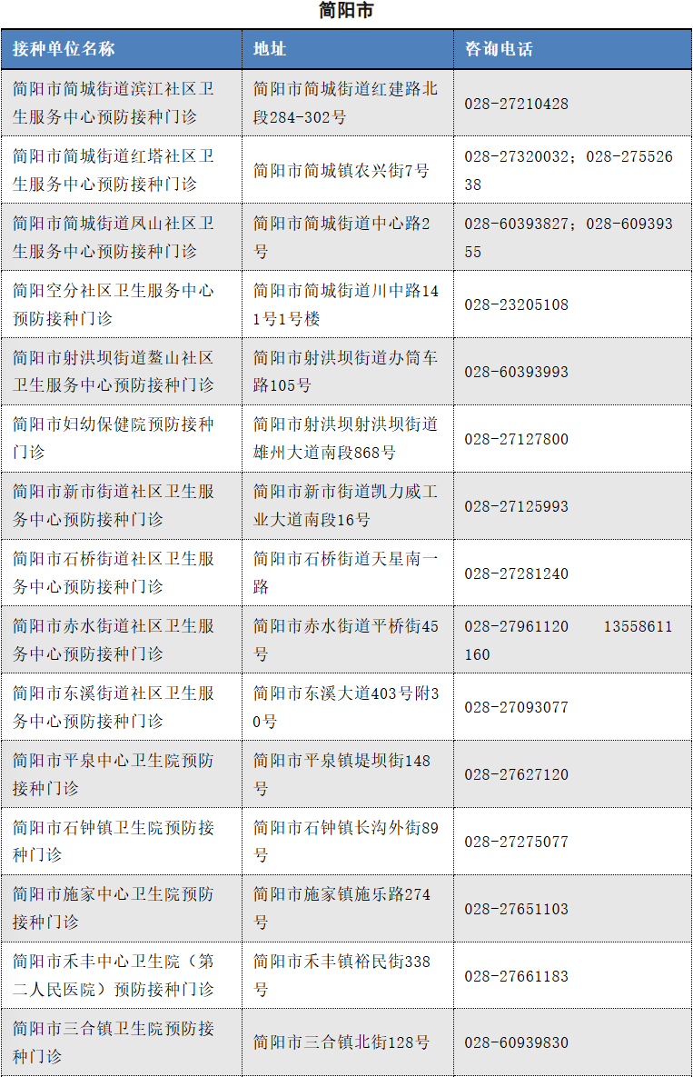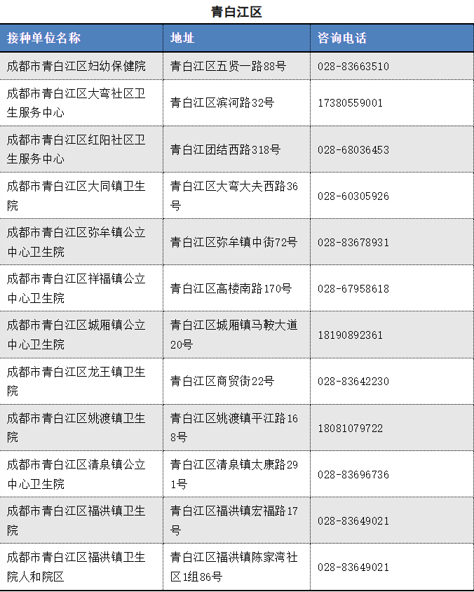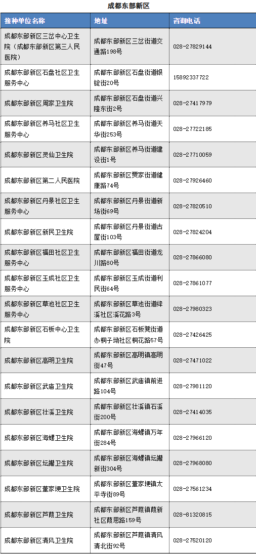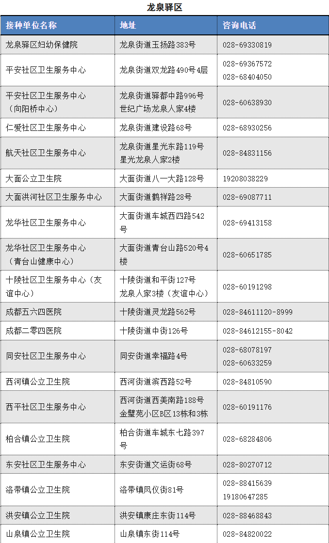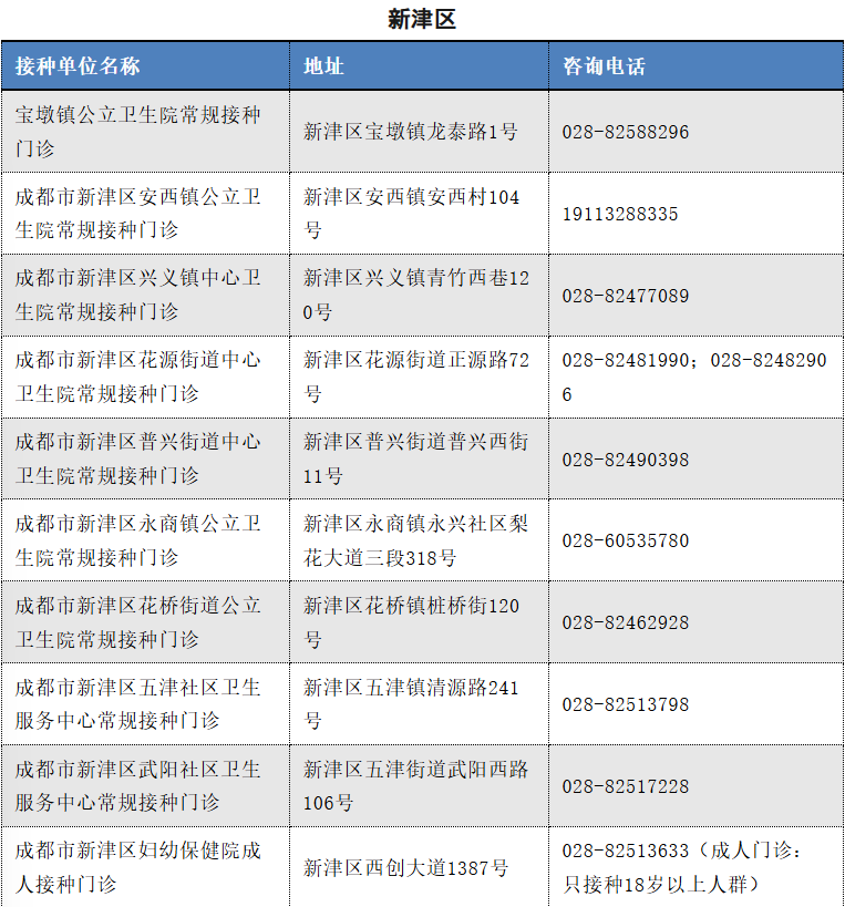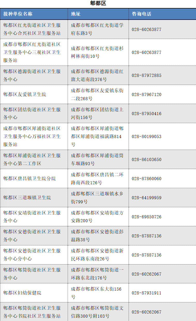 以下是成都市流感疫苗接种单位信息(截至2025.11.12)
