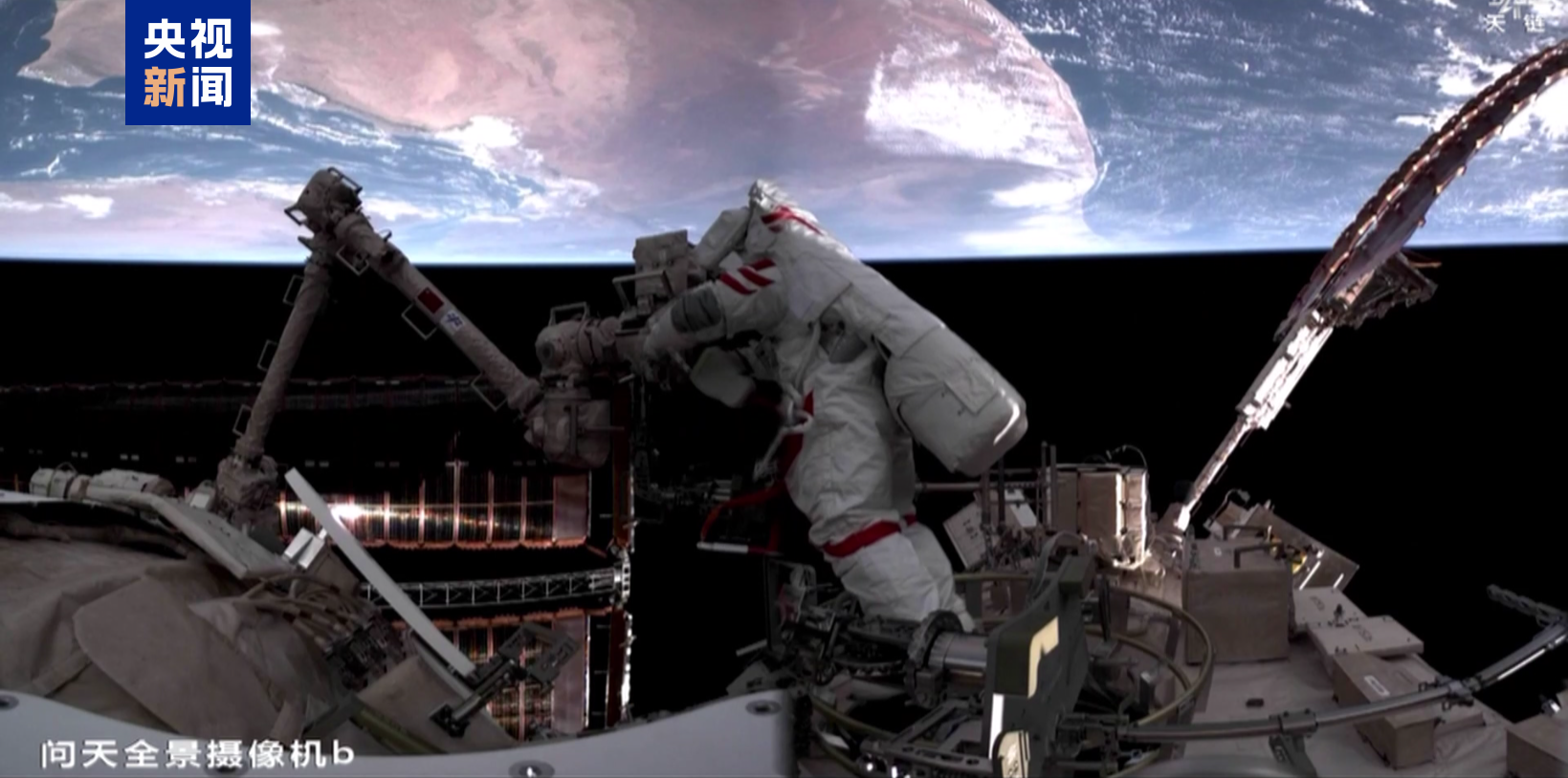 神二十一乘组第一次出舱画面