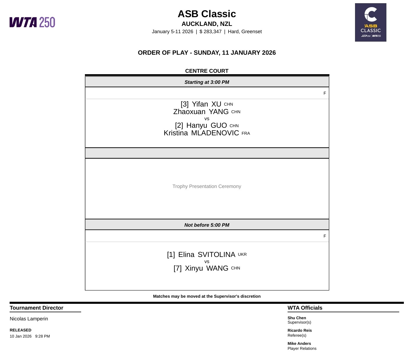不早于12:00斯维托丽娜 vs 王欣瑜