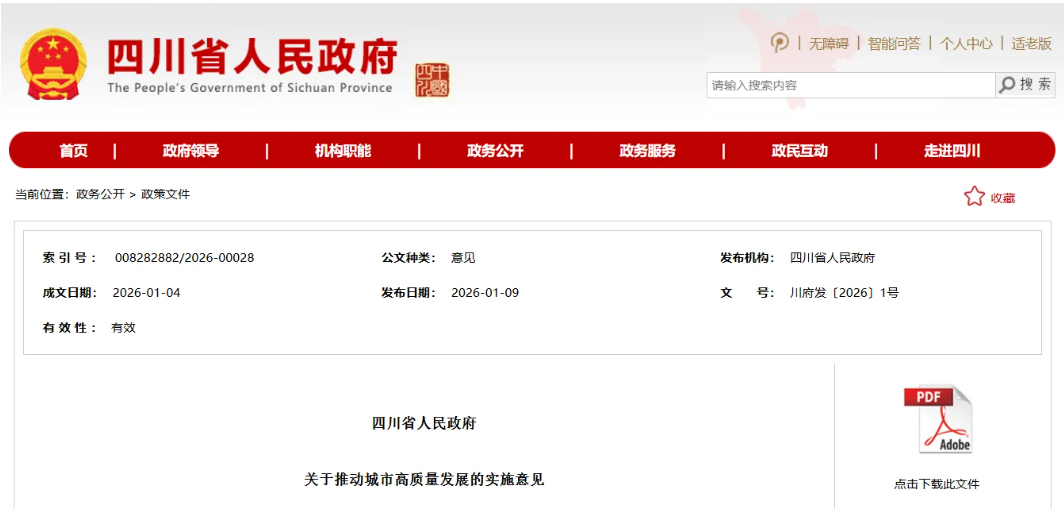 近日,四川省人民政府出台《四川省人民政府关于推动城市高质量发展的实施意见》(以下简称《实施意见》),着力推动四川城市发展方式转型,加快建设具有四川特色的现代化人民城市。