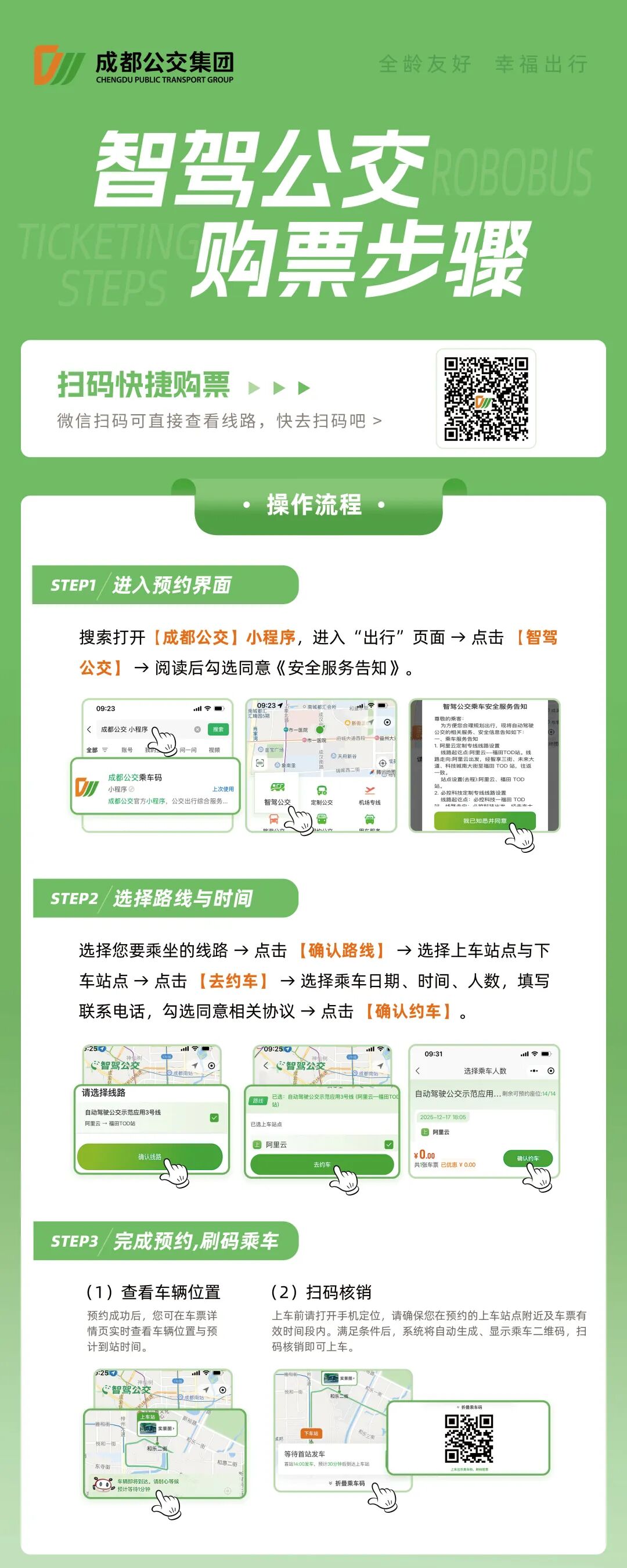 目前,成都所有自动驾驶公交线路均实行免费预约体验,预约指南速收藏!