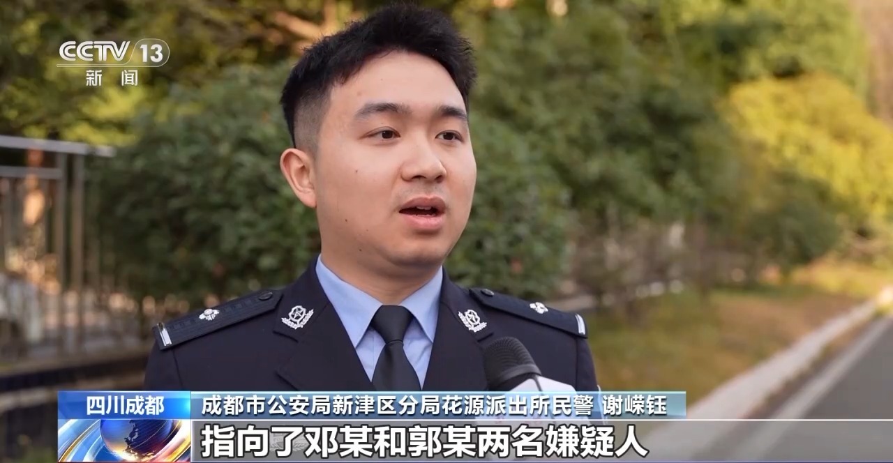 成都市公安局新津区分局花源派出所民警 谢嵘钰:所有资金最后都流向了两个隐秘的账户,而这两个账户的实际操控人,指向了邓某和郭某两名嫌疑人。