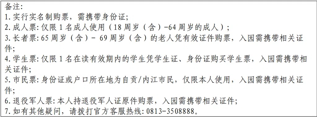 其中,免费入园人群为:1.3米(含)以下儿童(需一名购票成人陪同);70岁(含)以上老人(凭本人身份证原件);导游(当日带团导游凭导游证);消防救援人员(凭干部证、消防员证);残疾人(凭一、二级残疾证及一名陪同人员限免票一次,需到景区游客中心办理免票入园凭证);记者(凭本人有效记者证原件);现役、残疾军人(凭现役军人证、残疾军人证);烈士、因公牺牲军人、病故军人遗属(凭“三属”优待证);持人才卡人群(凭全国范围内各省级人才卡、自贡市“盐都人才绿卡”);台湾同胞(凭台湾台胞证)。